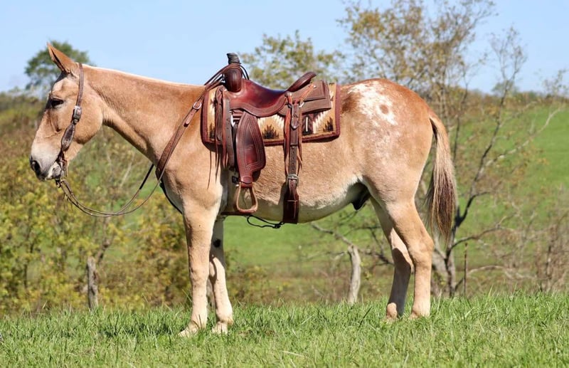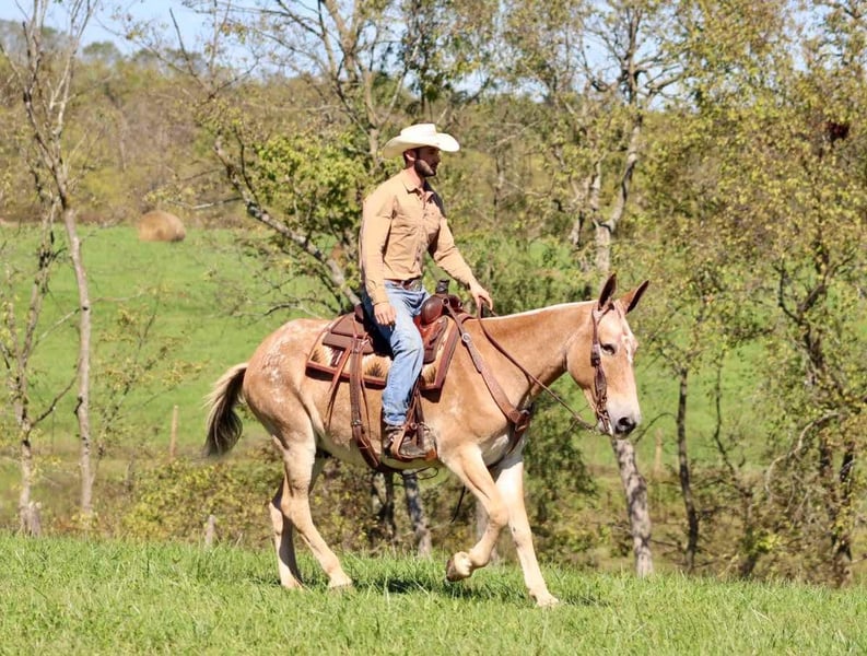 ONLINE AUCTION Place your bids at www.PlatinumEquineAuction.com Starting Bid $3500 Auction ends November 3rd, 2024 Need a new saddle? Check out White Rock Saddles on our website or Facebook! Rhodey is a 14 year old, 15.3 hand John mule. He is as quiet and gentle as they come as well as friendly and in your pocket. Rhodey has had extensive training throughout his life and is a joy to ride. He walks, jogs, and lopes nicely. He rides gathered up and soft in the bridle like one should. One step and he’s in a rocking chair lope. He neck reins and works off the leg. Backs and side passes nicely. He’s been shown in local horse shows and is competitive against the horses. You can open and close gates with him. As for trail riding, he is a dream. He goes through deep water, isn’t afraid of deer or turkeys when coming across them. He steps over logs and will leave the group when asked. He also rides out alone. Rhodey is traffic safe if you need to ride on the road or want to take a quick ride through town. There isn’t a way to ride him wrong. Bareback, with a saddle, or 2 or 3 kids lined up down his back. He is fun and a mule you can trust! He stands nicely for the farrier, is easy to clip, ties well and travels nicely. Rhodey is not a mule you have to ride everyday. You can give him the entire winter off and when you come back to ride him in the spring, he is just the same as he was at the end of summer. For more information, please call/text Sammi Waugh 704-798-5497 Located in Brooksville, KY. ONLINE AUCTION Place your bids at www.PlatinumEquineAuction.com Starting Bid $3500 Auction ends November 3rd, 2024 Need a new saddle? Check out White Rock Saddles on our website or Facebook!