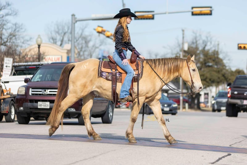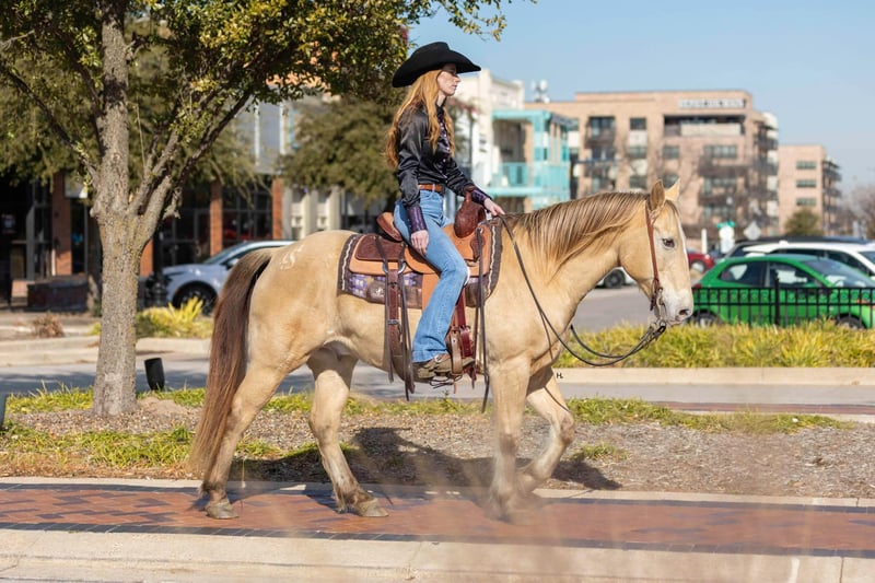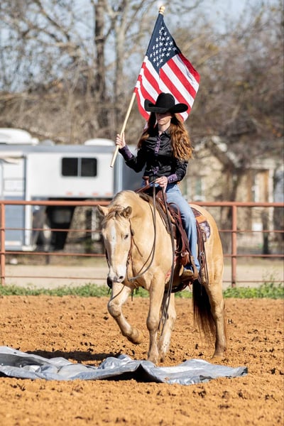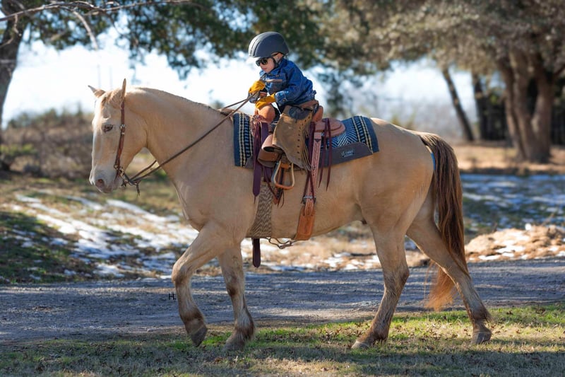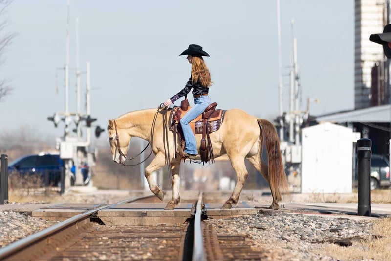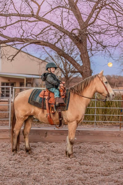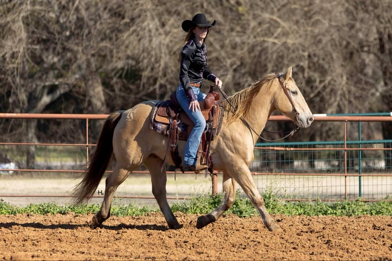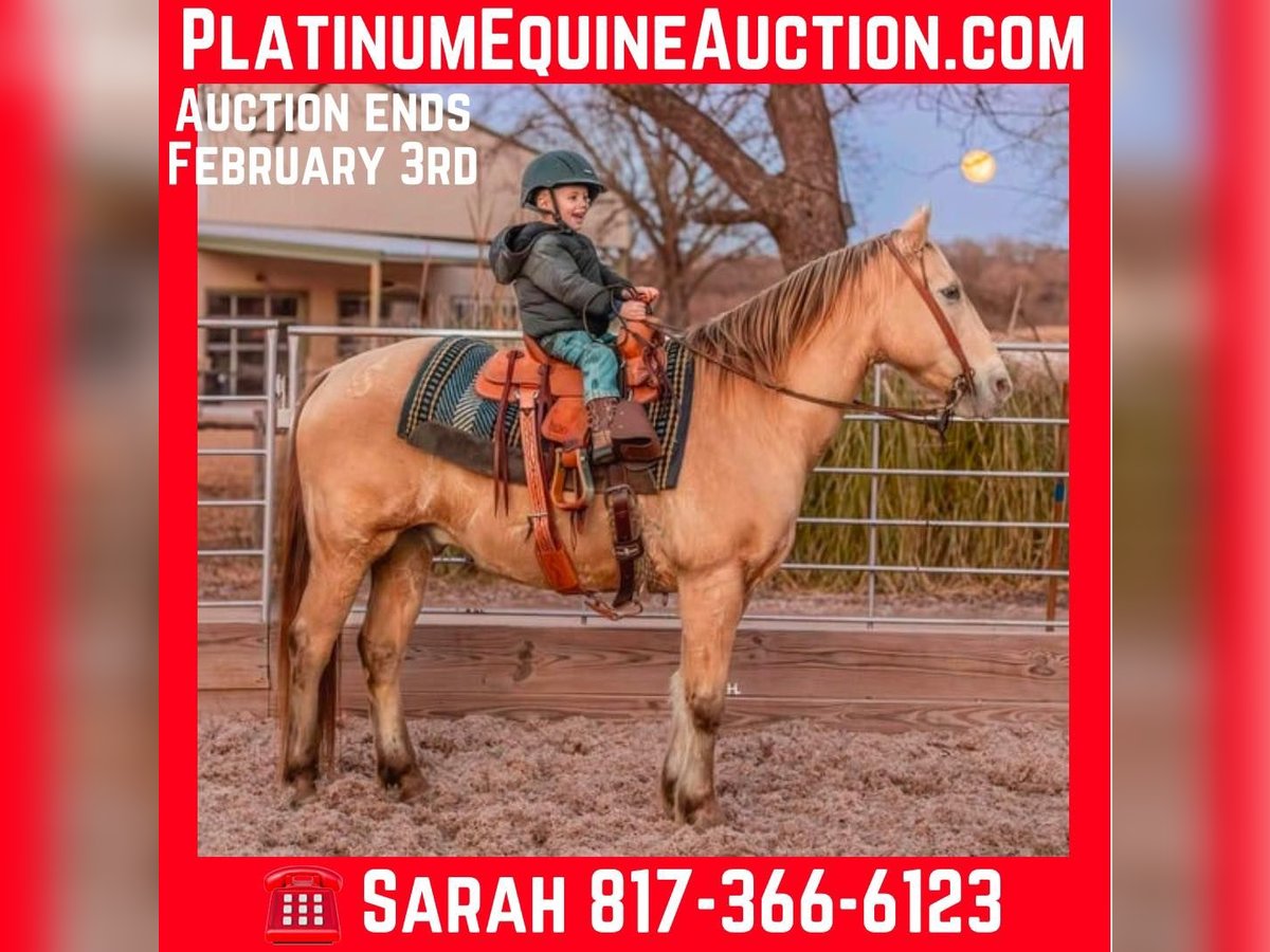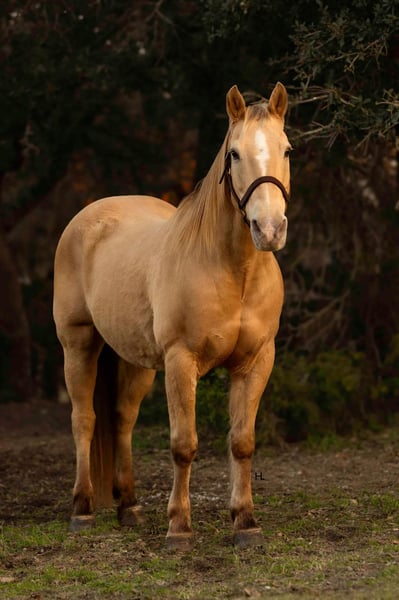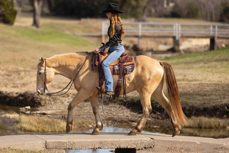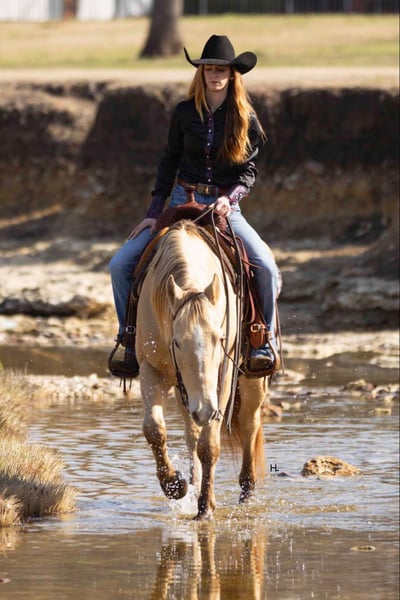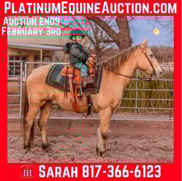 ONLINE AUCTION Place your bids at www.PlatinumEquineAuction.com Starting Bid $3500 Auction ends February 3rd, 2025 Need a new saddle? Check out White Rock Saddles on our website or Facebook! Let’s start the new year off with some champagne that’s safe and legal for everyone to enjoy and can be enjoyed on a budget! If you’re needing as close to an insurance policy in horse form as you can get, this is the guy. Dorado is 16yr old, 14.3hh, amber champagne gelding that’s the type you can throw anyone on and know they will be safe. From the trails to the arena he is unflappable, straightforward to ride, and will always be one of if not the most unique looking horse in the group. He’s the type that you can’t wipe the smile off your face when you’re riding him because he’s that fun. Dorado came across the southern border in 2018 and has been with the same family since here in Texas. He’s been used for basic ranch work (gathering/sorting/pasture roping) from south Texas to east Texas, used up at the sale barns, been trail rode everywhere in between, and has been the mount for the grandkids to ride around the ranch. Out on the ranch, Dorado makes even a long day enjoyable and go by quickly with his ground covering walk, his smooth trot, and his rocking chair type lope. He’s easy to use in the pens to sort some off and won’t object to the extra work if one needs roped. In the arena, Dorado won’t be the fanciest horse there but does everything with ease. He’s one hand broke, comes to a stop easily, will step right into a lope, picks up the correct leads, and won’t go faster than what’s asked of him. On the trails he’s the point and shoot type. There is nothing this gelding won’t cross and he has no problem making his own trail if you feel like going off the beaten path. Dorado is great with traffic, crosses all types of bridges, handles uneven terrain well, crosses water, and is pedestrian friendly. You can ride him bareback in a halter with no problems or ride him in any bit you want, ride him when it’s sunny and 75° or ride him in the freezing sleet and Dorado is going to be the exact same for it all. Our 3yr old little boy, who isn’t a super confident kiddo, has ridden Dorado a ton and Dorado has never made us question our boy’s safety no matter the conditions or where Stetson has ridden him at; whether it’s just above freezing with 20mph wind gusts, riding out in the open, or riding in a brand new location. Dorado has always been patient with Stetson and has always taken care of him. When it comes to how he handles time off, we know for a fact you can leave Dorado off for 2yrs, saddle him up, and he will ride off like he’s been being ridden everyday as the first time we rode him he had been off that long for no other reason than his owner wasn’t able to ride. Dorado is gentle to be around, stands tied like a gentleman for everything, will ground tie for the farrier, doesn’t object if you want to ride him double with a friend, will let you crawl all over, around, and under him without so much as shifting his weight, and loads right up in a trailer like one should. He’s as tried and true as they get in our opinion. Dorado has no bumps or scars on any legs, passed his recent health and lameness exam with flying colors, has never required any type of maintenance care, and has had no previous health or lameness issues. He has a ton of bone with fantastic, hard feet that he’s always been barefoot on with no issues no matter the terrain as well. Dorado is UTD on all care from teeth to feet and has a recent health exam on file that can be viewed on his page on our website. This is a nice, solid gelding ready to give someone confidence in the saddle or just be the horse you can always rely on. We invite you to come see and try Dorado at our place in Weatherford, Tx. PPEs are always welcome and we can help set up hauling to wherever you call home. For any questions and to talk about if Dorado is right for you, you can contact H Spur Performance & Versatility Horses Sarah 817-366-6123. To see more pictures, nearly an hour’s worth of videos, and to view Dorado’s Health Exam you can visit his page on our website at www.hspurhorses.com/dorado ONLINE AUCTION Place your bids at www.PlatinumEquineAuction.com Starting Bid $3500 Auction ends February 3rd, 2025 Need a new saddle? Check out White Rock Saddles on our website or Facebook!