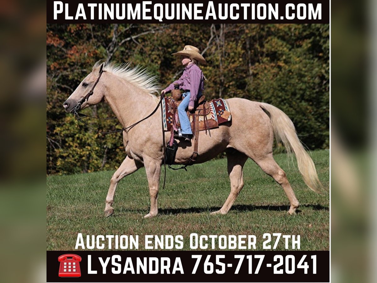 ONLINE AUCTION Place your bids at www.PlatinumEquineAuction.com Starting Bid $3500 Auction ends October 27th, 2024 Need a new saddle? Check out White Rock Saddles on our website or Facebook! If you need a total confidence builder, a horse that will take care of you where ever you may go, a horse that is on AUTO-PILOT… Lariat is the horse for you!!! Since owning Lariat he has been our 6 year old daughters main horse. She has had him camping, trail riding, rode out and checked the cows on him, you name it and she can do it with him! We have walked out in the pasture and caught him after not being ridden for a month and our daughter has ridden him bareback in a halter, back to the barn while the other horses run or trot around him. Lariat has proven himself time and time again as a confidence builder that has been kid safe for our girl. He is so easy to ride that he is simply automatic… you think it and he does it for you. He will rein around easily with one hand, he will open/shut gates, lopes off easily and is very smooth in his lope as well. He has a good stop, he lopes nice circles and rides on a loose/draped rein or even in a halter. He is a pretty palomino color and has that friendly personality that everyone wants! Lariat stadns around 15H, is stocky built and is 15 years young and everyone always wants a horse that is broke like him but only 5 years old… NEWS FLASH folks- the miles and experience makes the horse, so Lariats years of experience are what makes him so great and trustworthy! He is ready to go hit the trails, work on the ranch or go ride in 4-H. He has done it all out on the ranch! He has pasture roped and doctored sick ones, sorted pairs as well! Lariat has been ridden in multiple states from Oklahoma to Kentucky. He will cross creeks, ditches, logs and navigate rough rocky areas. Lariat has zero spook in him, no matter where you take him he is a steady Eddie! He is super quiet on the ground as well and is easy to bathe, clean his feet and tack up. He has been exposed to all kinds of wildlife such as deer or turkey or other animals like cows or dogs and will go anywhere that he is asked too. He has been rode many miles in the mountains of Eastern Kentucky and encountered every obstacle possible on the trail. He has zero bad habits, no cribbing, weaving, is not cinchy and has absolutely no buck in him! I’m not sure what safety is worth to you but Lariat is 100% safe for total beginners, guest riders and kids of all ages to ride. He is the type of horse that can make a new rider grandma feel like and look like a cowgirl and a horse that will be a family favorite for years to come! Buy It Now offers are considered, test rides are welcomed! Feel free to call Lucky 13 Equine LySandra 765-717-2041 with any questions. Located in Brodhead, KY. ONLINE AUCTION Place your bids at www.PlatinumEquineAuction.com Starting Bid $3500 Auction ends October 27th, 2024 Need a new saddle? Check out White Rock Saddles on our website or Facebook!