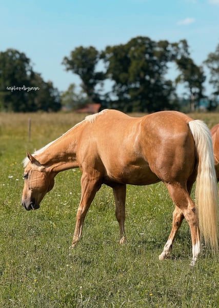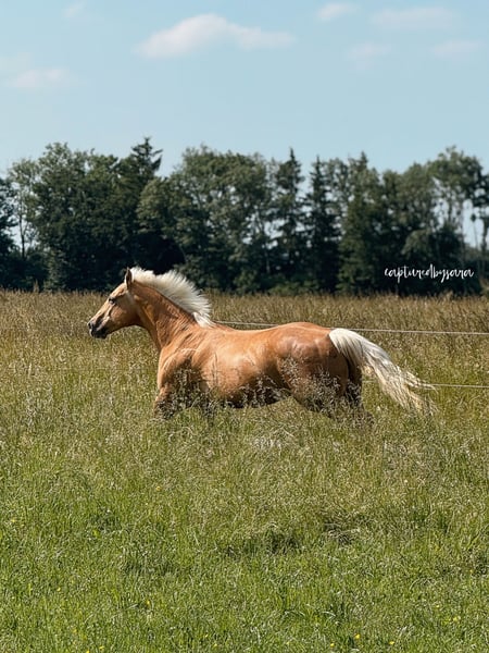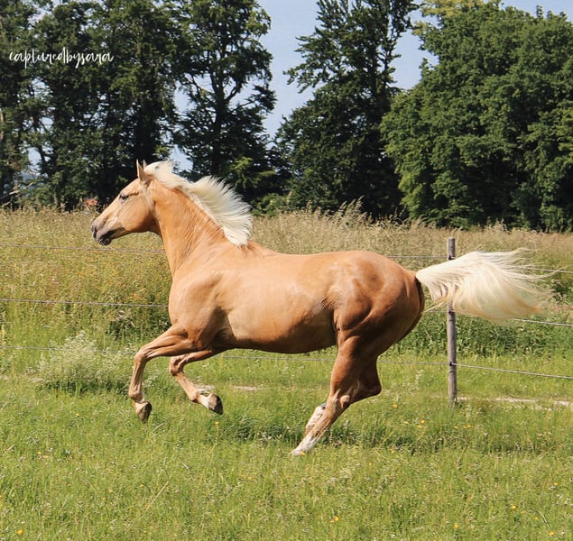 For sale is our Quarter Horse gelding, Friscorima. Frisco was born in 2008 and stands at 1.60 meters. He has an excellent Western riding education and has achieved several wins in competitions, including becoming the German Champion in Cutting in 2013. He was a stallion for a long time but was gelded due to PSSM; however, this does not restrict him in any way, and he has never been ill with us. Frisco is very gentle to ride and truly enjoyable; he also brings a smile to your face during groundwork. He knows and loves children who ride him regularly. Additionally, he is regularly vaccinated and very well-behaved at the farrier. He is confident riding alone or in a group, both in the arena and in the field. With us, he lives in a paddock with a mixed herd, which we also wish for him in the future. He is only being sold because he is simply not getting enough attention with us. Of course, we prioritize the horse’s well-being over price, and he will be sold with his custom-made Western saddle. Feel free to arrange a test ride or contact us with any further questions.