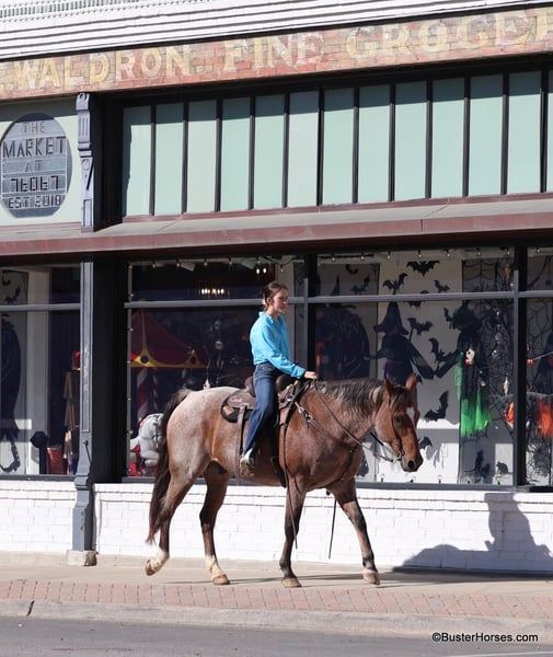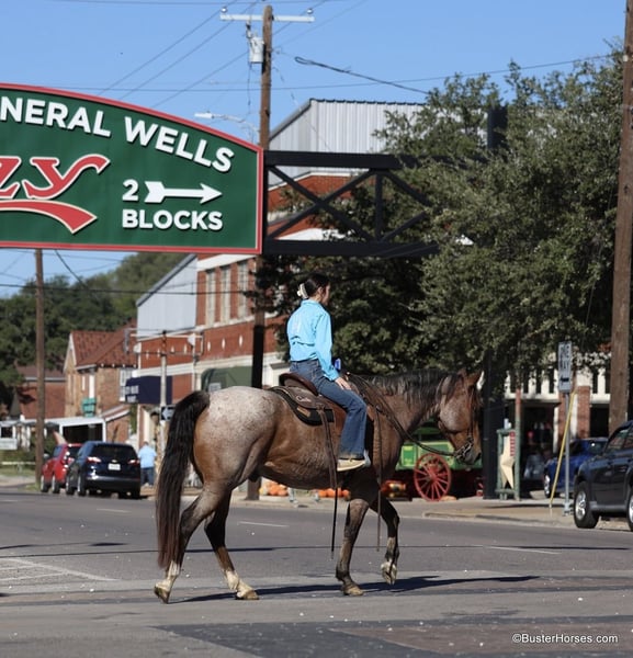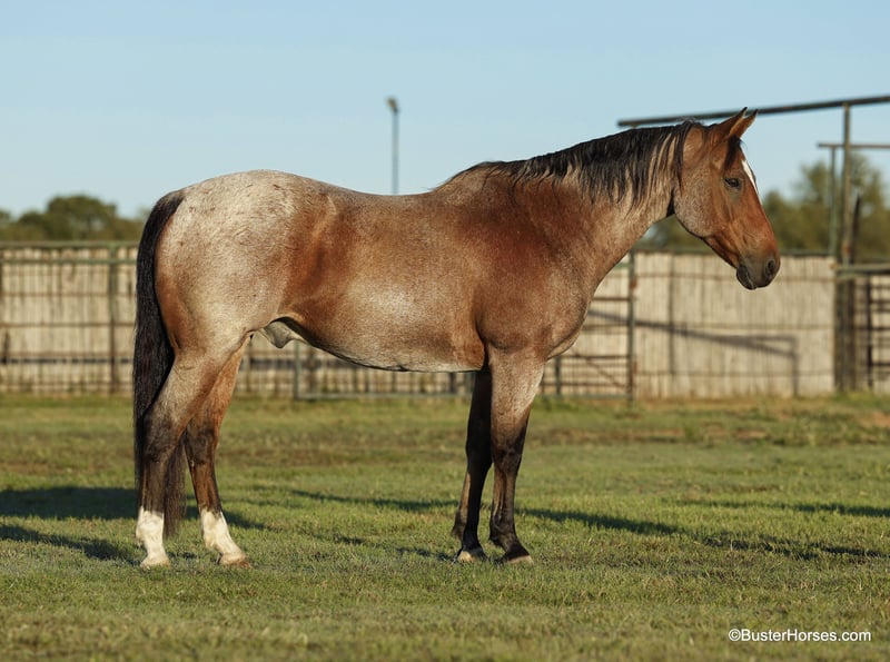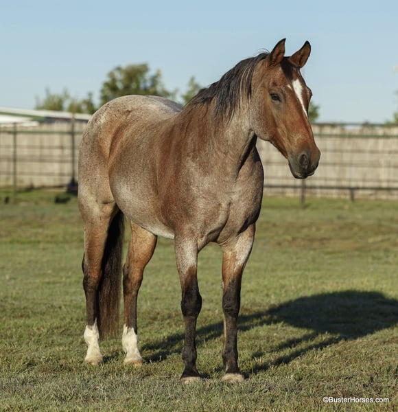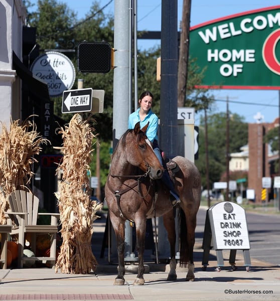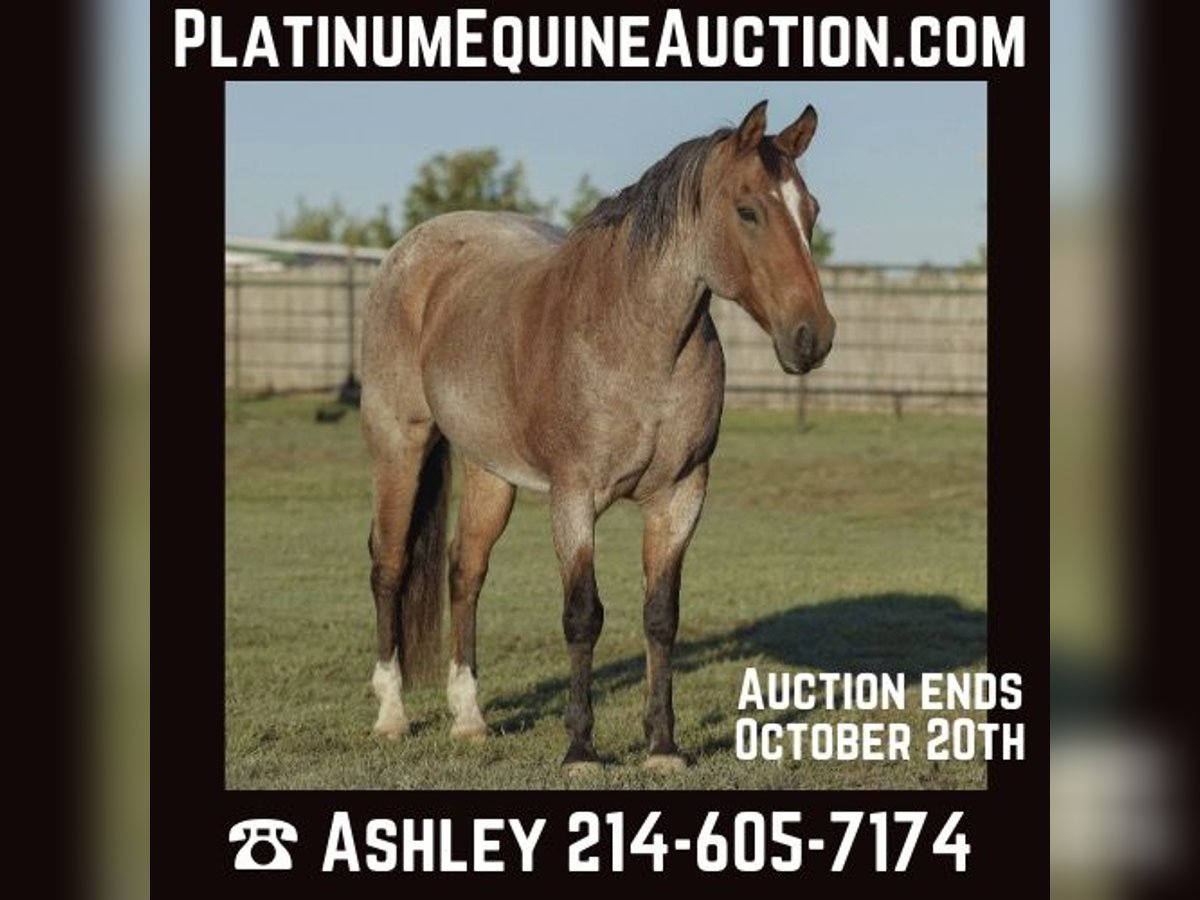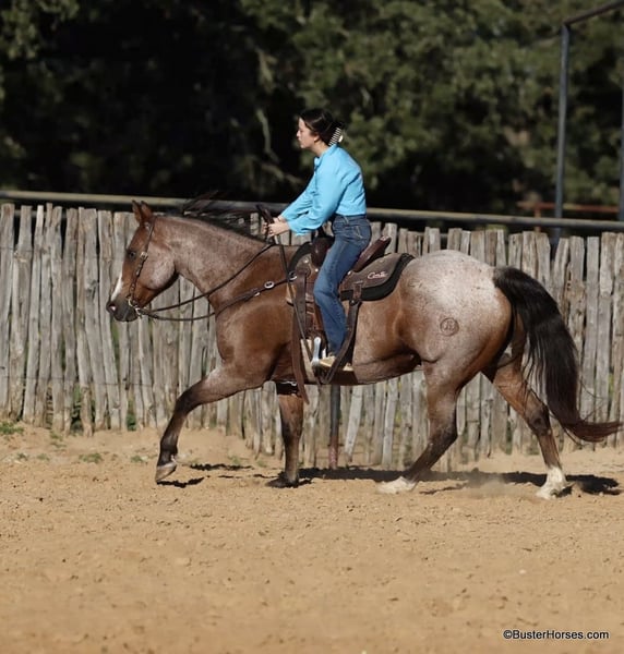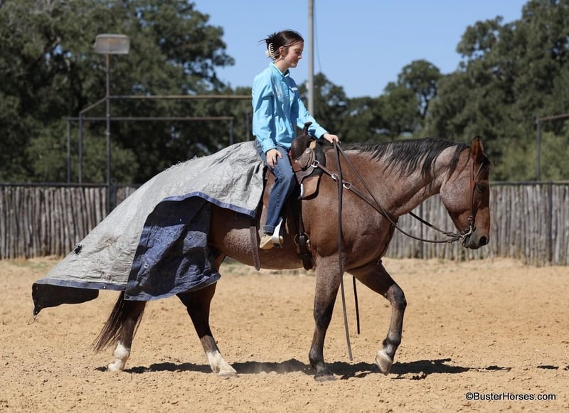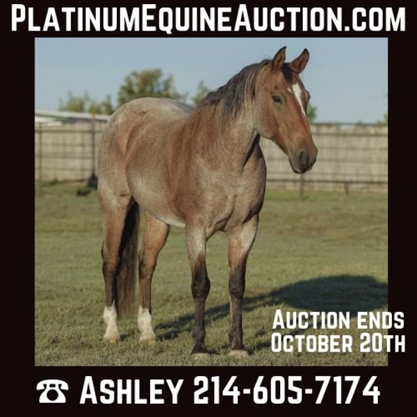 ONLINE AUCTION Place your bids at www.PlatinumEquineAuction.com Starting Bid $3500 Auction ends October 20th, 2024 Need a new saddle? Check out White Rock Saddles on our website or Facebook! “Romeo” – 15.1H, 15 year old bay roan grade quarter horse gelding This guy is just a no-nonsense solid citizen that everyone enjoys having around. When we take him places, we regularly get: “Dang, that’s a really good horse”. He is just genuine, honest, and always there for his rider. He is exceptionally kind and has a friendly and endearing personality. Romeo was used on a ranch when he was younger, he has been in a feed yard, been used for 4H and for playdays, and has even done some entry level ranch versatility shows. He is exceptionally good in town. He has been in lots of parades and grand entries and he has been ridden to the store and back many many times. He rides out confidently alone, and relaxed in a group. He will go anywhere you want to be in a group of horses, level headed and relaxed, ZERO jigging – happy to lead or to follow. He is sure footed and careful, but confident and willing to tackle anything you point him at. He is great to catch, the first one up to you out in the pasture, happy stall or barn kept to, gets along well with any mix of horses, he ties quietly, is good for the farrier and the vet, loves a bath, easy to groom and pick feet, saddle, and drops his head to be bridled. He hops right on the trailer if you just point him at it, and rides relaxed, and stands tied to the side of the trailer quietly. We have been using this guy in our small lesson program and a couple of the ladies that ride with us are very interested in him for their husbands (if they can get their husbands to pull the trigger and bid!). He is one we would love to still have around here locally and be able to borrow for camps or lessons – he makes teaching easy! We have tons of additional videos of this guy! To see additional videos, go to our website: BusterHorses.com or our Facebook page Buster Horses Romeo was just shod this past week, his teeth were also done by an equine dentist two weeks ago, and he had his sheath cleaned, his ears were preemptively treated for ticks, and he was also power packed wormed. He is good to shoe, has great feet and also goes well barefoot – if his new owner prefers him to be barefoot, we can have his shoes pulled and trim him prior to him heading to his new home. He will arrive at his new home up-to-date and ready to go to work! Please call anytime for more information at 214-605-7174 Romeo is located in Weatherford, TX – one hour from Dallas / Fort Worth International Airport. He is an easy day trip or fun overnight trip to come try out, from anywhere! We are experienced, knowledgeable sellers, and we can help with quickly arranging affordable shipping to any buyer’s location – we have experience shipping worldwide – including regularly to Hawaii, Canada, Mexico, Europe, and South Africa. ONLINE AUCTION Place your bids at www.PlatinumEquineAuction.com Starting Bid $3500 Auction ends October 20th, 2024 Need a new saddle? Check out White Rock Saddles on our website or Facebook!
