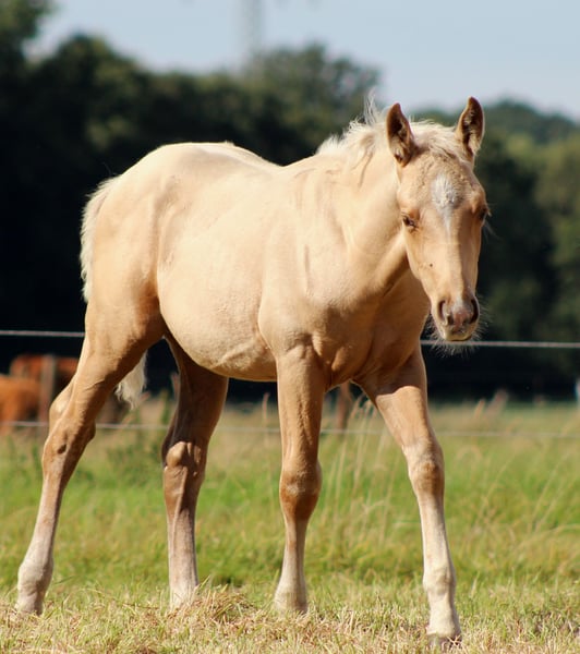 Zum Verkauf steht ein außergewöhnlich vielversprechender American Quarter Horse Wallach, geboren 2025 – ein echter Eye Catcher in Palomino mit Charme, Talent und Zukunft. Dieser junge Wallach überzeugt nicht nur durch seine elegante Erscheinung, sondern auch durch sein ruhiges, menschenbezogenes Wesen und sein bereits deutlich erkennbares Talent für den Reining-Sport. Ein Prospect, der alles mitbringt, um später im Turniersport wie auch als hochwertiger Freizeitpartner zu glänzen. 🔹 Details auf einen Blick: Rasse: American Quarter Horse Geschlecht: Wallach Geburtsjahr: 2025 Farbe: Palomino Geschätztes Endstockmaß: ca. 151 cm Disziplin: Reining 🔹 Zucht & Papiere: DQHA Equidenpass AQHA COR 🔹 Einzahlungsprogramme NRHA Germany SSP NRHA Belgium Sire & Dam nominiert (über Sire) EURO Futurity / Derby nominiert 🔹 Gesundheit & Aufzucht: Regelmäßig entwurmt Dem Hufschmied vorgestellt Altersgerecht aufgezogen, gut erzogen und umgänglich Auf Wunsch kann der Wallach zur weiteren Aufzucht bei uns bleiben. Dieser Jährling bietet eine seltene Gelegenheit für Reining-Reiter oder ambitionierte Freizeitreiter, die früh in Qualität, Talent und Charakter investieren möchten. 📞 Bei Interesse freuen wir uns über Ihre Kontaktaufnahme – gerne geben wir weitere Informationen und vereinbaren einen Besichtigungstermin. 🌐 www.white-diamond-horses.de