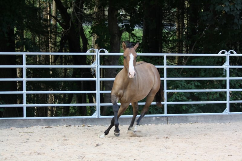 Queens King Gun - ein bildschöner Quarter Horse/Paint Horse Wallach, geboren am 11. Mai 2024, in der auffälligen Farbe dun. Er ist doppelt registriert bei der AQHA und APHA und wird voraussichtlich ein Endmaß von etwa 153 cm erreichen. Mit seinem korrekten, kompakten und kräftigen Körperbau, der guten Bemuskelung und der harmonischen Oberlinie bringt er alles mit, was man sich von einem zukünftigen Sport- oder Freizeitpferd wünscht. Er stammt aus einer qualitativ hochwertigen Allround-/Reining-Abstammung und ist genetisch 7-Panel n/n getestet. Queens King Gun wächst artgerecht im Offenstall in einer kleinen, gemischten Herde auf, kennt aber auch Boxenhaltung. Er ist sozial in der Gruppe, zeigt sich sehr menschenbezogen und freundlich und beeindruckt durch seine ruhige, gelassene und verschmuste Art: Dabei ist er unkompliziert im Umgang, zeigt ein gutes Nervenkostüm und lernt schnell. Der junge Wallach wird täglich gehändelt, ist halfterführig und wird spielerisch an Horsemanship herangeführt. Er kennt den Umgang mit Hunden, Traktoren und weiteren Alltagsreizen. Regelmäßige Impfungen und Entwurmungen sind selbstverständlich. Tierarzt und Hufschmied sind ihm vertraut, und er ist gesund, fit und altersgerecht erzogen. Bei Abgabe bringt er AQHA- und APHA-Papiere, einen Equidenpass sowie eine Zuchtbescheinigung mit. Ob als zukünftiges Showpferd oder verlässlicher Freizeitpartner - mit seinem hervorragenden Charakter und vielseitigen Potenzial ist Queens King Gun ein echtes Versprechen für die Zukunft.