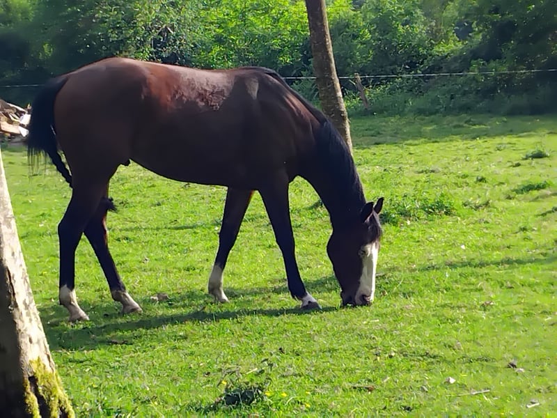 Vends très beau paint horse pp, 4 ans mars 2026. Yeux partiellement bleu foncé. Débourré, monté en carrière aux trois allures. Est déjà parti en balade en groupe plusieurs fois, s'est très bien comporté. Pas peureux, calme. Encore jeune en main, un petit peu de caractère parfois. Pieds nus. Pour loisir, balade.