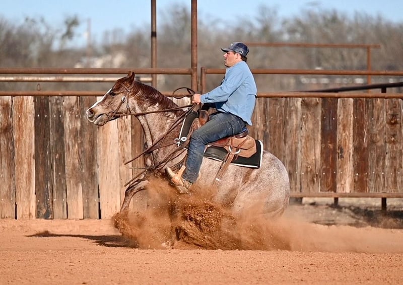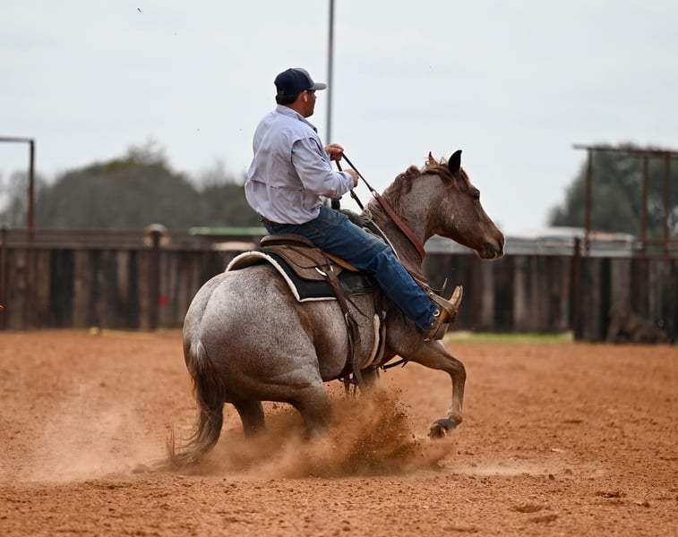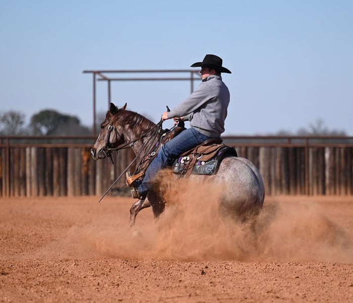 𝐍𝐀𝐓𝐄 𝐁𝐀𝐋𝐋𝐄𝐑𝐈𝐍𝐎 𝐇𝐎𝐑𝐒𝐄 𝐂𝐎'𝐬 ★ ℝ𝕀𝔸𝕋𝔸 𝔹𝕌ℂ𝕂𝕃𝔼 ★ 𝑺𝒉𝒐𝒘𝒄𝒂𝒔𝒆 Happening now thru SATURDAY | FEBRUARY 28th - Available EXCLUSIVELY on HorseBid's website! For more details and to register visit: www.Horsebid.com CONSIGNOR CONTACT: Nate Ballerino Horse co 254-716-9588 LOCATION: Waco, TX BREED: Quarter Horse REGISTERED: Yes REGISTERED NAME: Metallic Jackett COLOR: Red roan HEIGHT: 14 AGE: 3 GENDER: Gelding Vortex – Stevie Rey Von Gelding – Cutting & All-Around Prospect 🔥 Vortex, sired by Stevie Rey Von, was started in Michael Coopers Program. Vortex is going strong in the arena: lead departing, sliding stops, and turning both directions. We’ve pen roped on him extensively, and he shows major promise in any direction. An all-around prospect with plenty of talent, feel, and natural ability. Vortex is eligible for BREEDER'S INVITATIONAL, NCHA SUPER STAKES, NATIONAL REINING BREEDERS CLASSIC, NRCHA STALLION STAKES, RIATA BUCKLE, PCCHA STAKES, CHROME CASH, GOLD BUCKLE FUTURITY, IQHA RANCH HORSE FUTURITY, AND ROYAL CROWN. Please be Call Nate at 254-716-9588 with any questions. Nation wide shipping can be arranged.