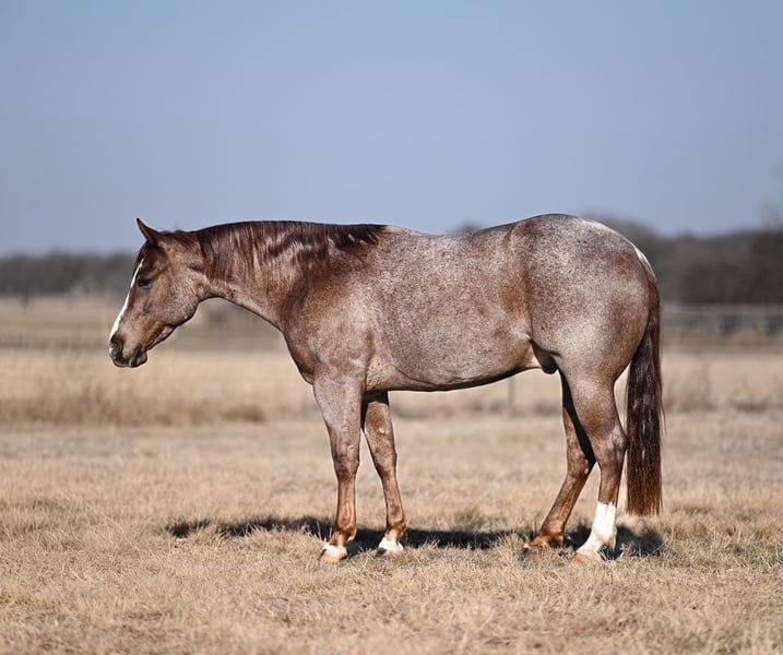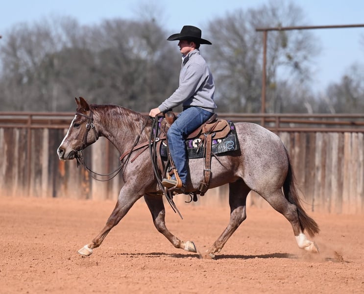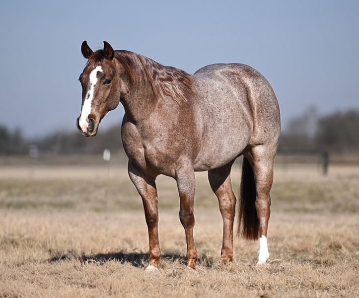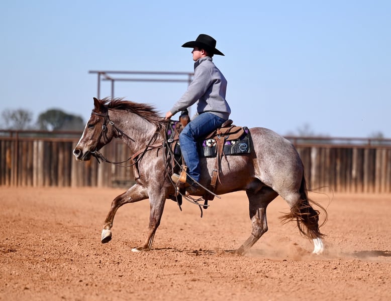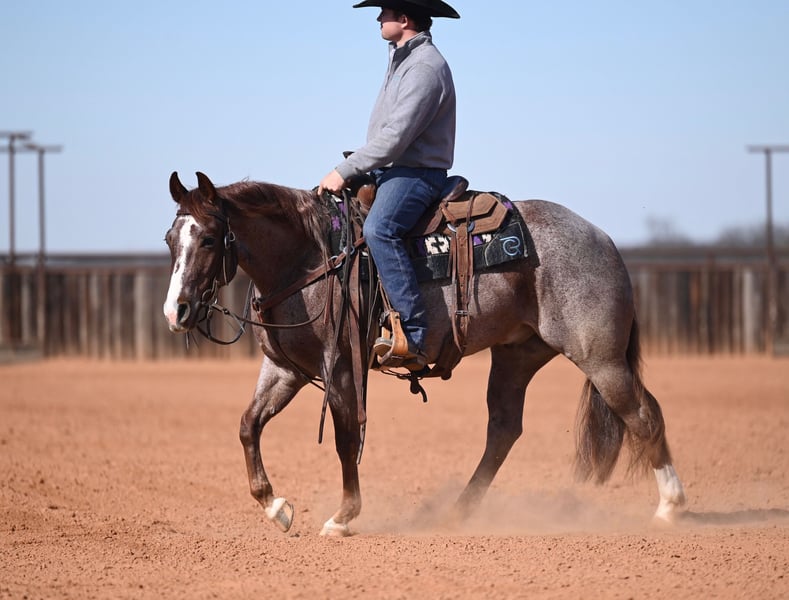 Vortex, gelding AQHA di 3 anni, altezza circa 14 mani, roano rosso