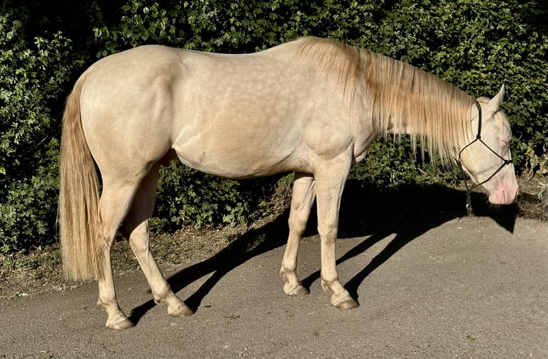 For sale is Ernie, a 2-year-old gelding currently standing at approximately 1.47 m, in a special color, with beautiful movements. He is farrier and loading friendly, walks well on a lead, is familiar with the saddle, groundwork, and desensitization training. In all situations, he remains relaxed, gentle, and is very motivated and incredibly eager to learn! He has no vices, just a nice guy who enjoys being active and appreciates engagement. For further information, I am available at any time :-)