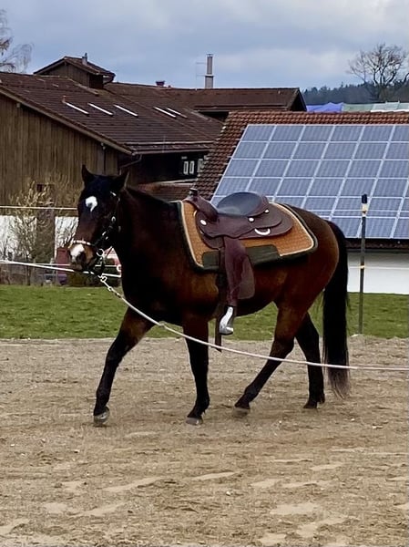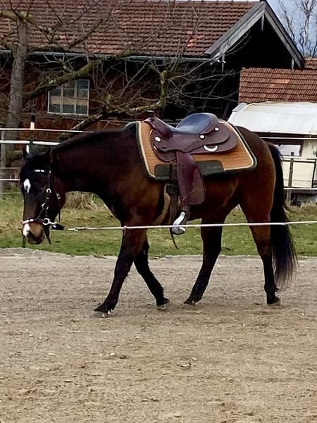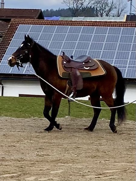 Zum Verkauf steht ein vielversprechender American Quarter Horse Wallach, geboren am 26. April 2023. Chex Barney Dun It besticht durch sein wunderschönes Köpfchen, seine tolle dunkelbraune Farbe und seinen gigantischen Bewegungsablauf. Barney ist sehr kräftig, äußerst muskulös mit korrektem Fundament. Er hat eine sehr lange, dichte Mähne. Absolut gerade Beine und sehr große, gute Hufe. Der Wallach ist speziell für den großen Reining Sport geeignet und zeigt bereits viel Talent in dieser Disziplin. Er ist freundlich im Umgang, lernwillig und eignet sich sowohl für ambitionierte Reiter als auch für Einsteiger, die einen zuverlässigen Partner suchen. Er liebt Spaziergänge, Bodenarbeit, kennt den Sattel und geht bereits toll an der Longe. Preis steigt bei weiterer Ausbildung! Barney hat eine Abstammung, wie man sie nur selten zu sehen bekommt. Mutter direkte Lil Peppy Dun It Right Tochter/Hollywood Dun It. Barney ist ein Chex Enterprise Enkel. Nur in allerbeste Hände, die dieses Juwel zu schätzen wissen. Kein Notverkauf, wird nur abgegeben, wenn wirklich alles passt!
