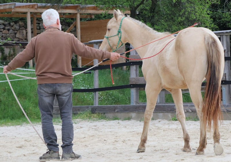 Ivo è un giovane stallone espressivo che è stato curioso fin dal primo giorno. Diventerà un partner molto affidabile per la vita per l'ambizioso ciclista amatoriale o agonistico. Viene accuratamente preparato da noi per la sua vita futura con i metodi dell'Equitazione Naturale. Si gode la sua vita in un alloggio aperto su un grande pascolo in una mandria mista. Sulla nostra pagina http://pferdezucht-maxen.de/Ivo-Dunit-Maxen/ sotto il pulsante "Registro di allenamento" troverai lo stato attuale dell'allenamento.
