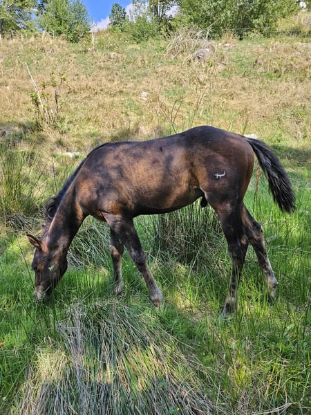 Pete is a calm and relaxed gelding. Great pedigree - suitable for sports and of course also for ambitious leisure riders. Clear mind. Affectionate. Grows up in a herd environment. Both parents are 5 Panel N/N. **Entering the yard and pastures of the establishment for viewings, as well as riding the sale horses, is always at your own risk! Exclusion of any warranty! We charge €50 for trial rides of our sale horses. This amount will be deducted from the purchase price of a horse.**