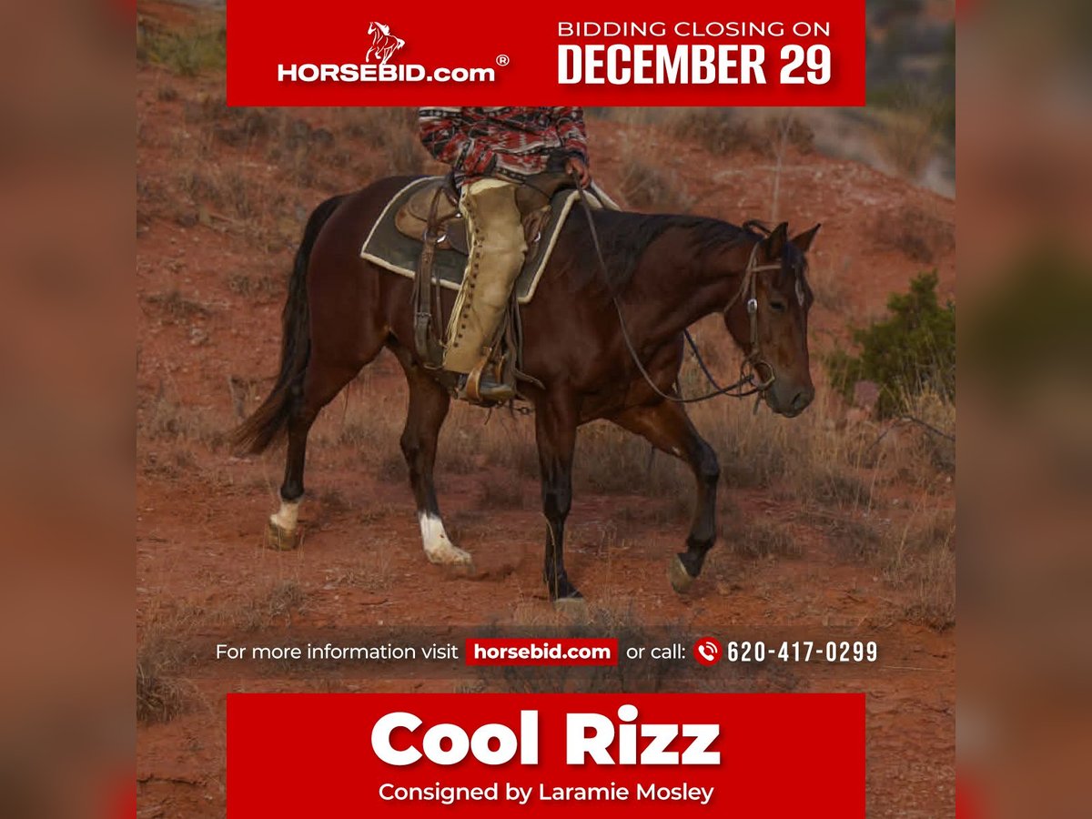 ⚜️ 𝓗𝓮𝓻𝓲𝓽𝓪𝓰𝓮 𝐖𝐢𝐧𝐭𝐞𝐫 𝓒𝓵𝓪𝓼𝓼𝓲𝓬⚜️ Happening now thru MONDAY | DECEMBER 29th - Available EXCLUSIVELY on HorseBid's website! For more details and to register visit: www.Horsebid.com CONSIGNOR CONTACT: Laramie Mosley 620-417-0299 LOCATION: Canyon, TX BREED: Quarter REGISTERED: Yes REGISTERED NAME: Cool Rizz COLOR: Bay HEIGHT: . AGE: 2 GENDER: Gelding This outstanding young colt is big, handsome, and talented, with a mind far beyond his years. He is quiet, sensible, and easy to be around—so good minded you’d never guess how young he truly is. He has real-world experience outside the arena paired with an exceptional start inside it. He has a lot of feel and natural ability, and is the kind of horse that could go in so many different directions. Under saddle, he shows fancy spins with big reach, a deep, correct stop, and cute, balanced circles. He is an easy, beautiful mover with natural cadence and feel. This colt will work the flag and has come out of a solid cow horse program, giving him a strong, correct foundation. Outside the arena, he has had cattle doctored on him and has been used to sort and ship. He would make into a rope horse overnight, or you could easily finish him out in the cow horse or shot events. He is sired by Cool N Hot, an earner of over $460,000 LTE, and out of a daughter of Cats Red Feather, an $8,300 earner, giving him both the pedigree and performance genetics to match his ability. He is also eligible for the Gold Buckle Futurities, adding even more value and opportunity for the future. This is a young horse that truly offers the best of both worlds—real ranch experience and polished arena training, combined with looks, talent, pedigree, and an exceptional brain that sets him up for a very bright future in any direction you choose.