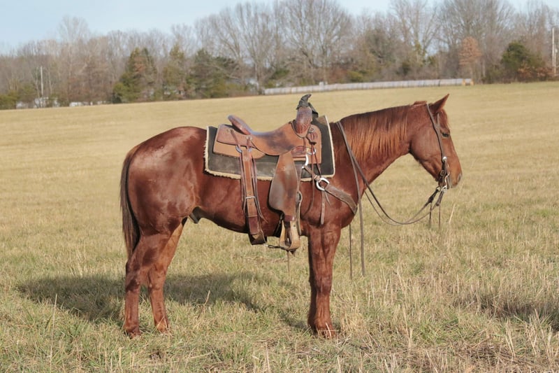 ⚜️𝐓𝐇𝐄 𝓗𝓮𝓻𝓲𝓽𝓪𝓰𝓮 𝐖𝐢𝐧𝐭𝐞𝐫 𝓒𝓵𝓪𝓼𝓼𝓲𝓬⚜️ Happening now thru MONDAY | DECEMBER 29th - Available EXCLUSIVELY on HorseBid's website! For more details and to register visit: www.Horsebid.com CONSIGNOR CONTACT: Eli Sales 417-848-6360 LOCATION: Mt. Vernon, MO BREED: Quarter Horse REGISTERED: No COLOR: Sorrel HEIGHT: 14.2 AGE: 3 GENDER: Gelding Champ is 3 year old sorrel quarter horse gelding with a sweet disposition and a calm, willing attitude. With no buck, kick, rear or bite on top of his in your pocket personality he’s the kind of young horse that’s a pleasure to be around—gentle, quiet-minded, and easy to handle both on the ground and under saddle. Champ has been used extensively outside to gather cattle, drag calves in the branding pen and to take leisurely trail rides as well as countless days in the stockyards opening and closing gates, sorting cattle and pushing them down the alley. No matter what you find in your path whether it’s rough rocky terrain, mud, brush or even the need to swim across the river, Champ will cross whatever you point him at without hesitation. Champ rides amazing with no buck, kick, rear or bite, moves out smoothly, and takes everything in stride. Champ has good ground manners, stands patiently for grooming, saddling and the farrier. Champ is very respectful and easy to catch whether he’s in a stall or turned out in the pasture he is guaranteed to be in your pocket asking for a treat. He has a solid foundation and the mind to continue learning without fuss. With his attractive sorrel color, sturdy build, and laid-back personality, Champ will make a great partner for a youth, amateur or experienced horseman looking to take him an any direction they choose. Whether you’re looking for a future ranch, trail, rope or all-around horse, Champ has the temperament and potential to excel. If you’re searching for a gentle young gelding that is 100% sound with a great mind and a bright future, Champ is the gentleman you’re looking for.