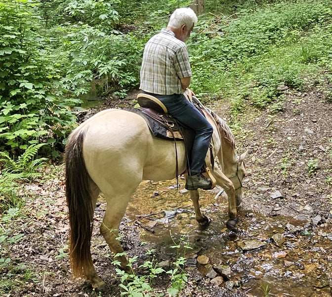 Zeb King Maxen – a stunningly beautiful Quarter Horse gelding, born on May 2, 2022. His rare and extraordinary Amber Champagne Dun color makes him truly eye-catching. He is expected to reach a height of approximately 14.1 hh and is compact, correctly built, and sturdy – with promising proportions that make him a versatile all-rounder. Zeb is healthy, genetically 6-Panel n/n through his parents, and naturally vaccinated and dewormed according to his age. He grew up in a mixed herd in an open stable, where he experienced plenty of calmness and security under optimal conditions. His character is as impressive as his appearance. The gelding is friendly, curious, resilient, and relaxed. At the same time, he is attentive, eager to learn, and brave when facing new challenges. Zeb is well-behaved, easy to handle, well-trained, and learns quickly – ideal prerequisites for a reliable partner for the long term. Currently, he is being gently and thoughtfully prepared for life as a riding horse, following the principles of Natural Horsemanship. He has been backed and shows himself very calm and well-behaved, even in the terrain. With his excellent pedigree, wonderful temperament, and versatility, Zeb is an ideal prospect for leisure riding, sport, or competition. He is a genuine young talent with a bright future – a loyal partner you can rely on.