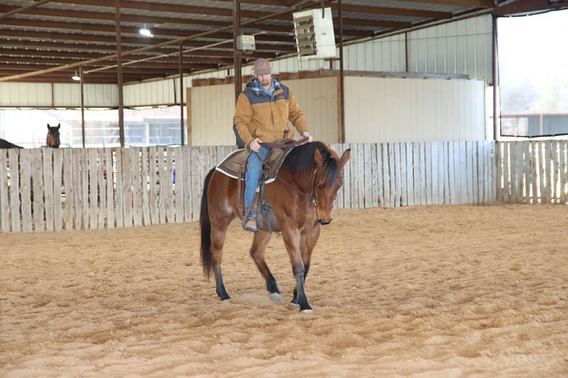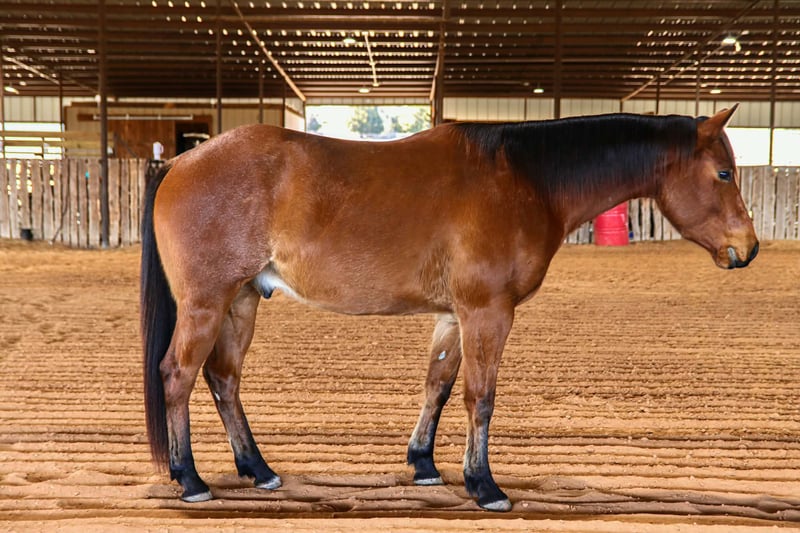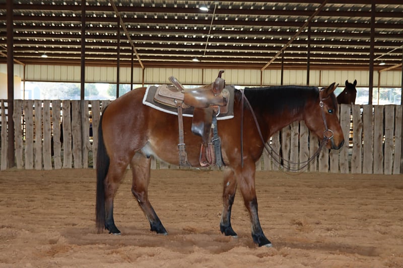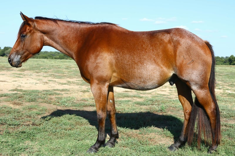 "AVAILABLE ON ONLINE HORSE AUCTION AT www DOT PlatinumEquineAuction DOT com BIDDING OPEN NOW thru SUNDAY | MARCH 8TH! *Final price will be determined on auction site* CONSIGNOR CONTACT INFO: Marco Roux Performance Horses 918-910-1197 LOCATION: Holdenville, OK Bay Roan gelding 3 coming 4 year old standing 15 hands high should mature to 5.2 hands This gelding has a solid foundation and has been started right with a great personality that wants to please this horse will make someone an awesome ranch/trail/or rope horse. He has roped the sled,worked at the sale barn ,sorted cattle on the ranch ,been on trail rides and really a great all around horse ready for a job . Stands tied ,loads easy , stands for farrier, good in the wash bay .