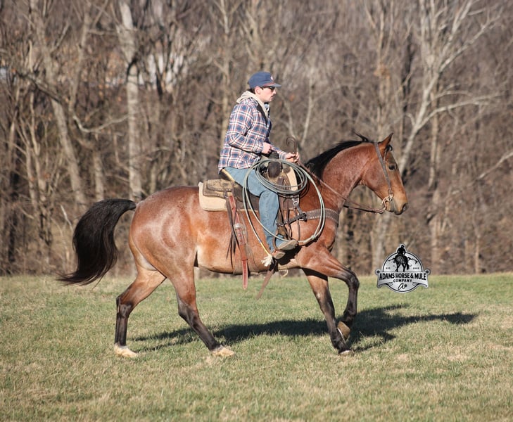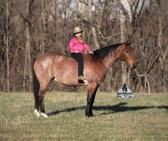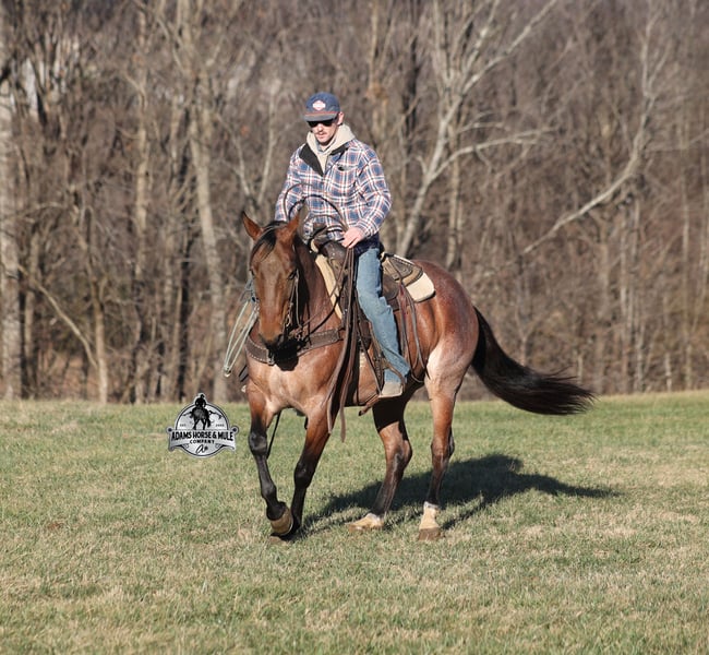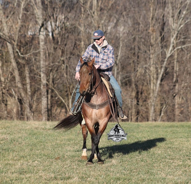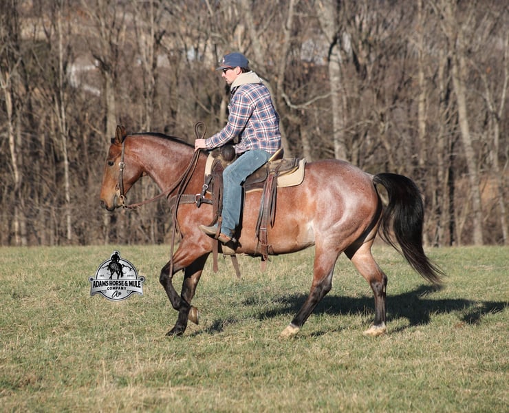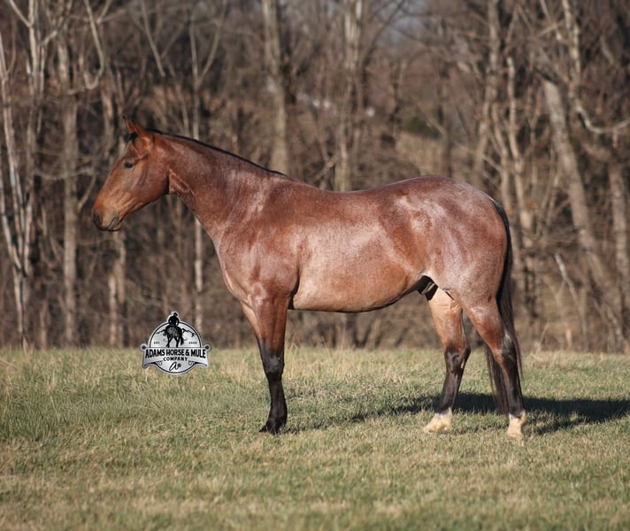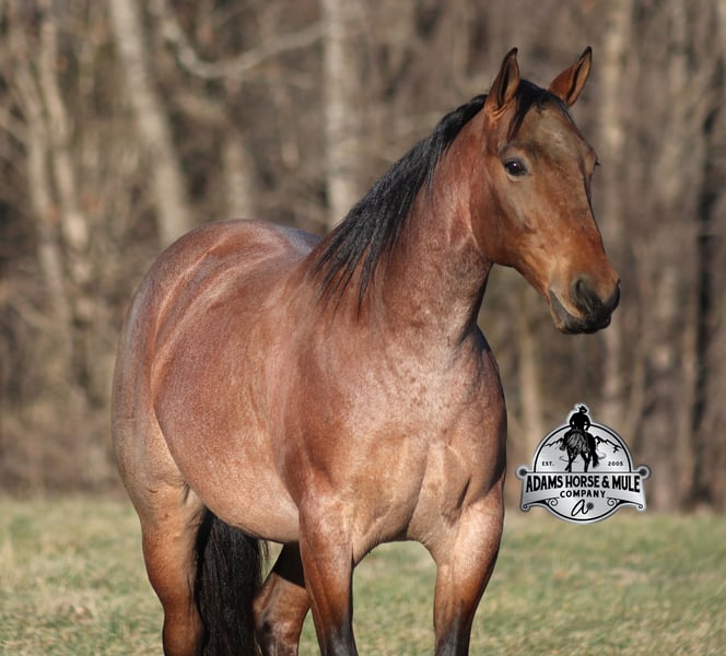 𝐀𝐝𝐚𝐦'𝐬 𝐇𝐨𝐫𝐬𝐞 & 𝐌𝐮𝐥𝐞 𝐂𝐨𝐦𝐩𝐚𝐧𝐲'𝐬 ✷𝑬𝒗𝒆𝒓𝒚 𝑴𝒊𝒍𝒆 𝑨 𝑴𝒆𝒎𝒐𝒓𝒚✷ 𝐄𝐗𝐂𝐋𝐔𝐒𝐈𝐕𝐄 𝐒𝐀𝐋𝐄 Happening now thru MONDAY | FEBRUARY 2nd - Available EXCLUSIVELY on HorseBid's website! For more details and to register visit: www.Horsebid.com CONSIGNOR CONTACT: Adams Horse and Mule Company 606-308-2461 LOCATION: Mt. Vernon, KY BREED: AQHA REGISTERED: Yes REGISTERED NAME: Blanton's Shadow Boyi COLOR: Bay Roan HEIGHT: 15 AGE: 4 GENDER: Gelding Get your clipboard out and sharpen your pencil, ALL of those boxes are gonna get checked when you see Blantons Shadow Boy… standing around 15H tall and just about as wide, Blanton is a 2021 model Reg AQHA, gelding, with a metallic bay roan coat! Not only does he check that box in the looks department, take a look at his pedigree as he goes back to Mr. Illuminator. The most important part of a horse is their mind, and Blanton is as good as they come in that department!!!! He is quiet, gentle and very friendly. He is a horse that any level of rider can get along with and he will take care of his rider. He is everyone's best friend, has never met a stranger and he is the same horse with time off. He has plenty of experience as he has been used out on the ranch for pasture roping and doctoring. He has been ridden in the arena and lopes slow and easy in nice circles, spins both ways and has a good stop… he has the moves to go along with the good looks! If the ranch work is done and you just want to go for a relaxing trail ride, that is his favorite thing to do... steep slopes, rocky terrain, creeks, logs, ditches… he crosses it all with ease and is never in a hurry, with a group or by himself! Blanton is the horse that can do any job, ride anywhere, the whole family can ride him and the whole family will love! Looks, Pedigree, Training, Experience, Versatility, Safe… he truly checks ALL the boxes!!! Call Eric 606-308-2461 for more info.