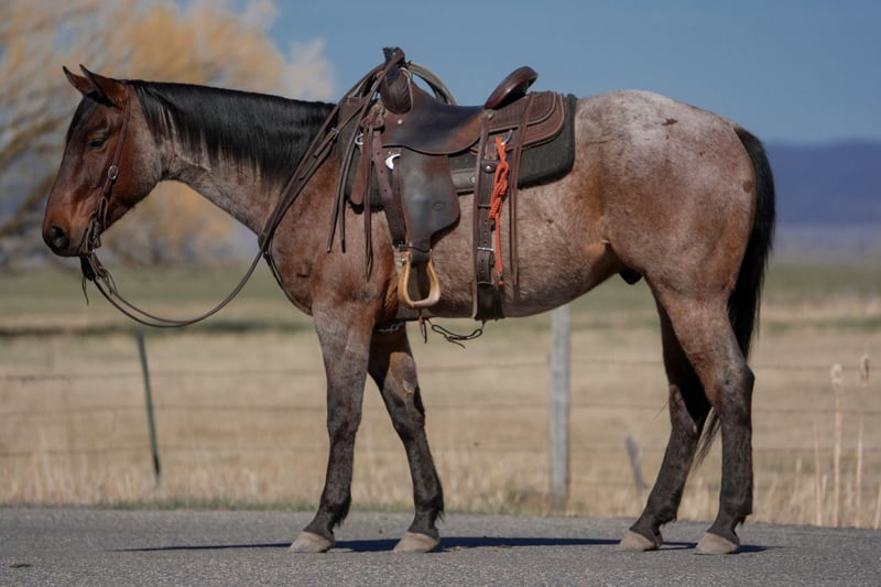 ▪️▫️◾️𝐭𝐡𝐞 𝑴𝒂𝒚 𝐒𝐞𝐥𝐞𝐜𝐭◾️▫️▪️ Happening now thru MONDAY | MAY 4th - Available EXCLUSIVELY on HorseBid's website! For more details and to register visit: www.Horsebid.com CONSIGNOR CONTACT: Larson Ranch Horses 208-541-0567 LOCATION: St. Anthony, ID BREED: AQHA REGISTERED: Yes REGISTERED NAME: LEROYS ROAN ROOSTER COLOR: Bay Roan HEIGHT: 15 AGE: 4 GENDER: Gelding Ringo is a super gentle and friendly AQHA bay roan gelding that sticks out in any crowd. He has all the charisma, charm, and characteristics that one could hope to find in a partner and friend. His quiet demeanor and beautiful build sets him apart from all the others. He's 4, but rides better than most geldings 3 times his age. He stands 15hh is kind, easy on the eyes, and a joy to be around. Ringo is no stranger to work and has been used in many different environments. He's great in the mountains and desert crossing and covering rugged country. He maneuvers his way around rocks, logs, brush, water, bogs, and other obstacles, all with ease. Ringo is really soft in all his body parts including the head and neck, and shoulders, ribs, and hind quarters making him a pretty mover in the arena ready for someone to make him their next eventing prospect. Ringo rides collects up nicely, picks up his leads and stops all on a loose rein. He's starting to spin, and when he moves, he moves effortlessly with ease and confidence. Ringo is a gentleman on the ground and comes with great manners making him safe for little ones to be around. He's so kind and respectful without being overbearing. He always aims to please and listen. Ringo has been started out of the box roping the dummy. He loves his job, wants to stop, and is strong from the horn. On the ranch he's been exposed to all of the daily chores of branding, gathering cows, sorting pairs, doctoring etc.. Ringo has been desensitized to cars and atvs, whips, tarps, noodles, flags, plastic bags, ropes, etc... If you're riding him in the arena as a queening horse or your next ranch event prospect, he’ll help capture the attention and emotions of the crowd. If you’re goal is to gather the respect of cowboys on the ranch, or showing off your new trail horse Ringo is a definite stand out that any ranch or owner would be fortunate to have. Please feel free to call if any questions. 208-541-0567 MULTIPLE REFERENCES & TESTIMONIALS AVAILABLE
