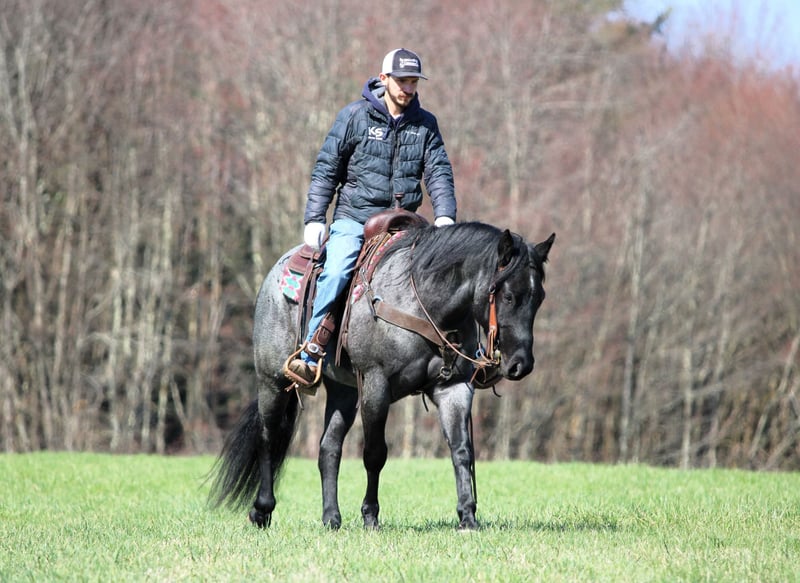 ⚜️𝐭𝐡𝐞 𝓔𝓵𝓲𝓽𝓮 𝐒𝐩𝐫𝐢𝐧𝐠 𝐂𝐥𝐚𝐬𝐬𝐢𝐜⚜️ Happening now thru MONDAY | APRIL 20th - Available EXCLUSIVELY on HorseBid's website! For more details and to register visit: www.Horsebid.com CONSIGNOR CONTACT: Rolling Rock Farms 814-924-3828 LOCATION: Miola, PA BREED: Quarter horse REGISTERED: Yes REGISTERED NAME: Got The Bye Bye Blue COLOR: Blue roan HEIGHT: 15 AGE: 4 GENDER: Gelding If you are looking for a beautiful, gentle, and well minded young gelding, Smurf is one you will not want to miss. This eye catching blue roan not only stands out in color, but also in his kind demeanor and willing attitude. Smurf has a great mind and is extremely gentle and forgiving, making him a pleasure to be around both in and out of the saddle. In the arena, he rides around quietly with a calm, level head and will carry a nice headset when asked. He trots steady and smooth, lopes slow, collected circles, and picks up both correct leads with ease. He also neck reins and has been started swinging a rope off of him. Outside the arena, Smurf has been extensively trail ridden. He will confidently go out alone or in a group and has been through water and over rough terrain without issue. He handles new environments with a level head and willing attitude. On the ground, Smurf is easy and uncomplicated. He stands quietly cross tied, is good for tacking, bathing, and grooming, and is respectful to handle. He is accustomed to both stall life and pasture turnout. Smurf is the kind of young gelding with the mind, foundation, and disposition to go in any direction, whether you are looking for a trail partner, ranch horse, or an all around prospect. If you would like to check out Smurf or have any questions please feel free to contact Ethan at (814) 924-3828
