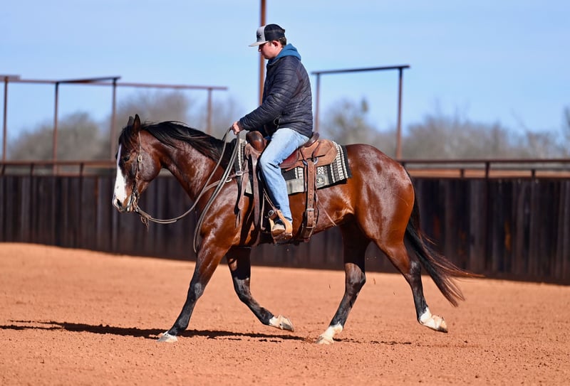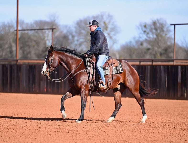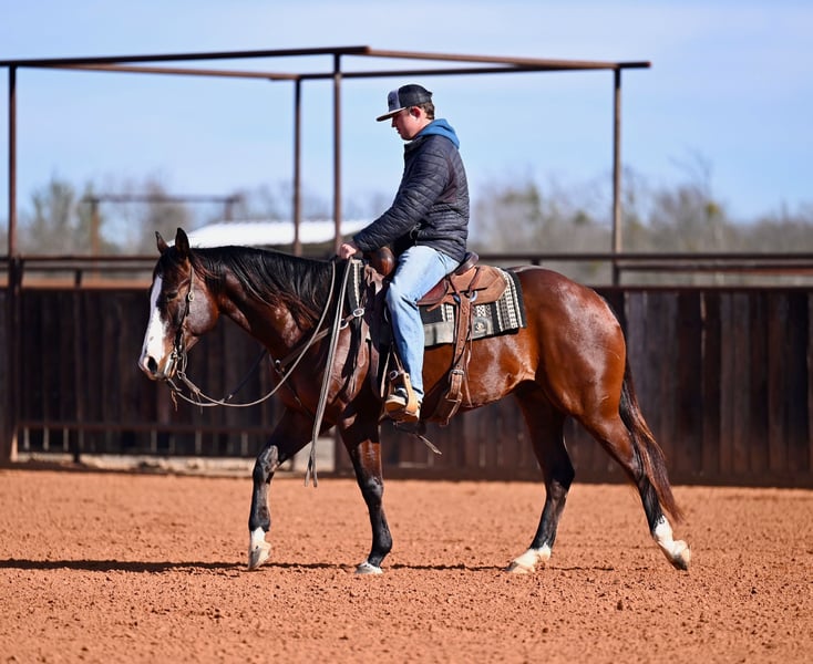 Mayhem, gelding bay AQHA di 4 anni, altezza 15,1 hh