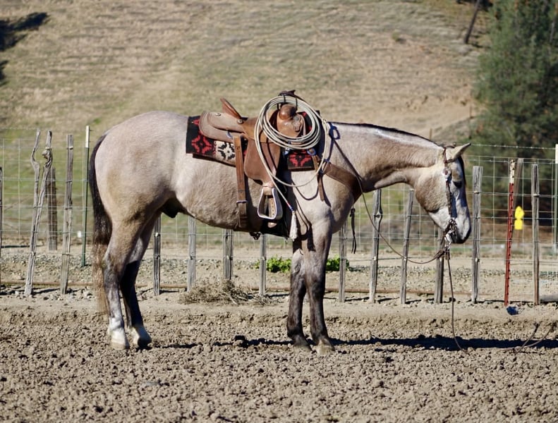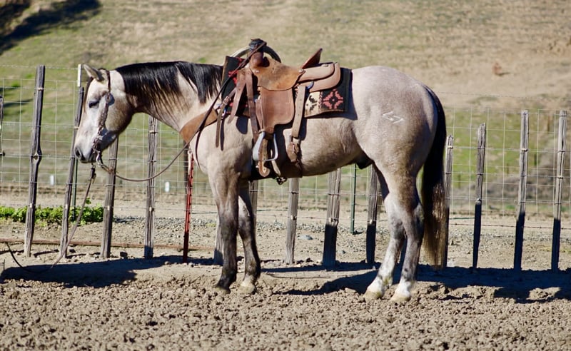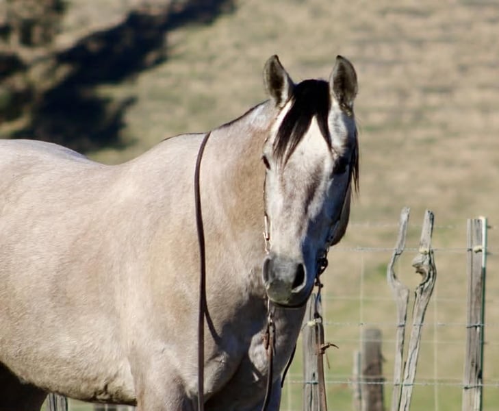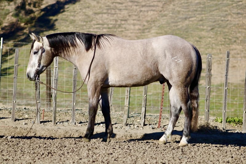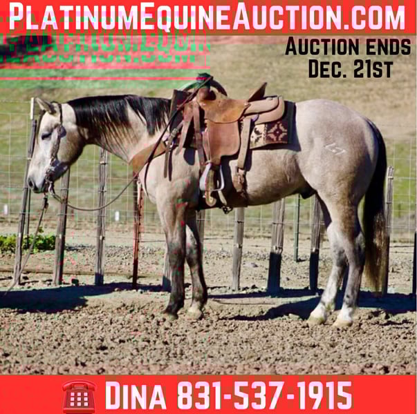 ONLINE AUCTION Place your bids at www.PlatinumEquineAuction.com Starting Bid $3500 Auction ends December 21st, 2025 Need a new saddle? Check out White Rock Saddles on our website or Facebook ROGERBEPLUM — The Gray Gelding that gets noticed everywhere he goes. Some horses look good in pictures. ROGERBEPLUM looks good in person, on video, and under saddle. AQHA registered, coming 4 (2022 model), and standing 15.1 hands of clean gray with a balanced, athletic build. He has that timeless ranch shape: strong hip, good shoulder, plenty of bone, and a smart, level expression. He is the kind that stands out in a group without trying. He’s been ridden out in the kind of country that makes a good, honest horse — through rocks and brush, across creek bottoms and water, up and down steep hills, and out around wildlife, ranch vehicles, and everyday road traffic. Tarps moving, flags flying, bridges, gates, tires, poles — he meets everything with steady curiosity. Horses ridden like this don’t have to be convinced to go somewhere; they’re ready to step in and get to work. In the arena, he rides with feel and purpose. Soft transitions, correct circles, a smooth natural lope, and a willing attitude that stays consistent. He stays connected when you pick up a rein and he learns from what you show him — each ride adds polish without losing that easygoing mind. He has been started tracking the lead steer and sled with genuine interest. He naturally rates, stays balanced through his shoulder, and offers something real to build on. If roping is where you want to take him, he’s already pointed in the right direction. If you want a versatile ranch, trail, or everyday using horse, he fits that as well. His pedigree is filled with proven using-horse lineage: Cheyenne Command, Fritz Command, Blue Try, Zans Two Tone, Two Tone Stargazer, Tee J Gold Jackie, and Tall Pine Rebecca — families known for good minds, durable structure, and long, productive saddle time. On the ground, he’s a straightforward horse to handle. He ties, clips, loads, bathes, and stands for the farrier. Stalls or pasture, alone or with company, he settles in quick and stays consistent. What sets ROGERBEPLUM apart is the blend of age, mind, and build — young enough to shape into anything you want, with the attitude to enjoy right now, and the physical quality to look good doing it. If you’re looking for a gelding with presence, potential, and years of real riding ahead of him, this gray deserves more than a quick scroll-by. He’s the kind people remember. Please feel free to call with any questions, and if you’re able, come visit him in person and take a ride. It’s the best way to see what a genuinely good horse he is. He is young horse they will make a great one in his future: Dina – Longhorn Ranch Paicines, California 831-537-1915 Shipping available nationwide ONLINE AUCTION Place your bids at www.PlatinumEquineAuction.com Starting Bid $3500 Auction ends December 21st, 2025 Need a new saddle? Check out White Rock Saddles on our website or Facebook