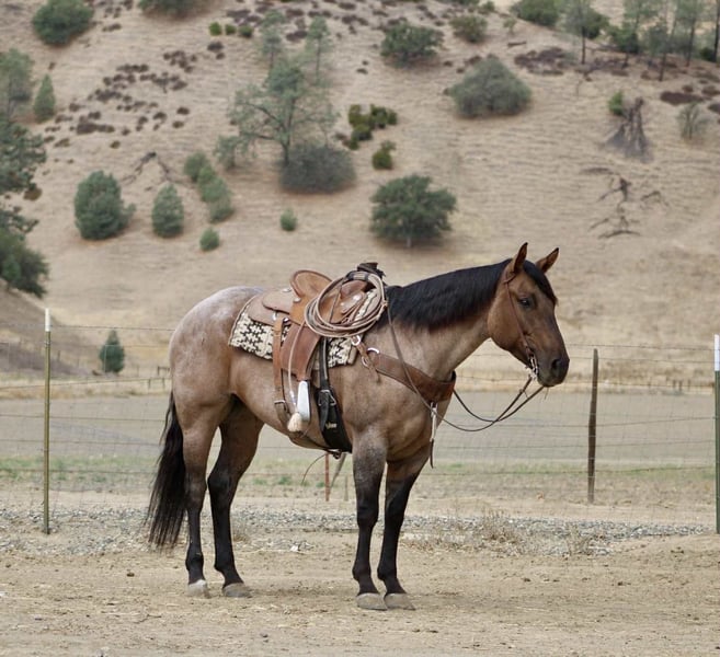 ONLINE AUCTION Place your bids at www.PlatinumEquineAuction.com Starting Bid $3500 Auction ends October 19th, 2025 Need a new saddle? Check out White Rock Saddles on our website or Facebook A Frosty Lou Lou – A Beautiful Dun Roan Mare Who Does It All! Every so often, a mare comes along that has all the right pieces — good looks, the right kind of pedigree, a steady mind, and a willingness to go anywhere you point her. Looking for a mare that turns heads, does her job, and keeps it classy while she does it? Meet Frosty Lou Lou, a 2021 AQHA beautiful dun roan mare standing 15.1 hands and built the way you want one: big hip, plenty of bone, and all the shape to last. She’s as solid-minded as she is pretty — gentle enough for a novice,broke enough to make a pro grin, and just the right age to take in any direction. Lou Lou is the kind you can throw a saddle on, cinch up, and ride off without a second thought. She tacks up easy, ties all day, and stands like a lady whether you’re shoeing her, doctoring one outside, or just stopping to visit. On the trail she’s already got more miles than some horses twice her age. Traffic, wildlife, logs, water, bridges, flags, tarps, even pool noodles and bouncy balls — none of it gets a rise out of her. She’s steady whether she’s riding out solo or in a group, and she’s the type you point at an obstacle and she just says, “Sure, no problem.” She’s been used on the ranch, branded calves, and seen the long days, giving her patience and sense that can’t be faked. In the arena, Lou Lou is started in the heading and shows all the right pieces to make a rope horse: flat across the line, pulls strong to the horn, faces up, and still soft in the face with a natural collection. She stops, backs, and neck reins the way one should. The best part? She’s as safe and gentle as she is talented. A novice can swing a leg over and feel comfortable, while an experienced hand will appreciate her correctness and potential. She’s the mare that can babysit one rider today and go to work for another tomorrow. Her pedigree makes her no accident. By Frosted By Roan (Double Drift / Dry Fork Roan lines) and out of Peptolou (by Weavers Boonsmal Doc, son of Peptoboonsmal), Lou Lou is built on a foundation of durability, cow sense, and brains. She’s got the papers to breed, the build to last, and the mind to do it all. Why Lou Lou is the real deal: • 2021 AQHA dun roan mare, 15.1 hands, stout and correct • Tacks up easy, ties all day, hauls and shoes with no fuss • Safe and gentle for novice riders, correct and talented for pros • Trail steady – traffic, wildlife, logs, water, bridges, tarps, flags • Arena ready – started heading, soft, collected, smooth stop, easy back-up • Ranch proven – branded calves, worked outside, built patience • Pedigree: Driftwood foundation bone x Peptoboonsmal cow sense They say you can’t have it all in one horse — looks, brains, breeding, and a gentle nature. Frosty Lou Lou would like to disagree. Located in Paicines, CA. Call Dina with Longhorn Ranch 831-537-1915 Nationwide shipping available ONLINE AUCTION Place your bids at www.PlatinumEquineAuction.com Starting Bid $3500 Auction ends October 19th, 2025 Need a new saddle? Check out White Rock Saddles on our website or Facebook