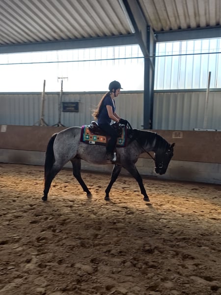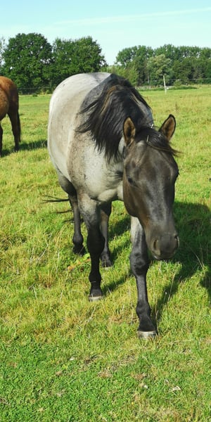 4-jarige Quarter Horse ruin in Grullo Roan te koop. Hij heeft een rustig, onbevangen karakter, is onder het zadel en zeer braaf. Gaat alleen het terrein in. Hij is gewend aan een open stal en is zeer sociaal. Hij loopt zonder ijzers, is regelmatig gevaccineerd en ontwormd en heeft zijn tanden laten doen. Hij heeft een klein schoonheidsfoutje aan het rechteroog, wat geen problemen oplevert. Een paard om van te houden en zelf op te leiden! Helaas ontbreekt het me aan tijd om hem verder te ontwikkelen.