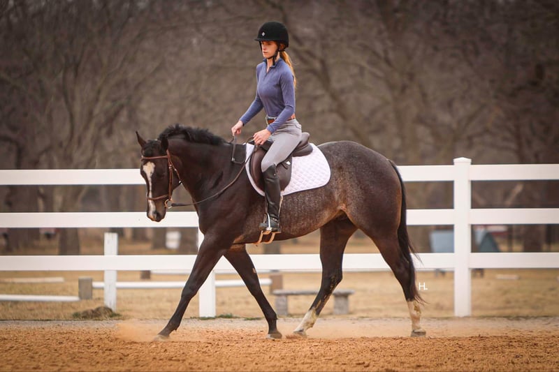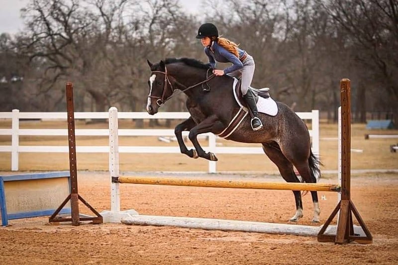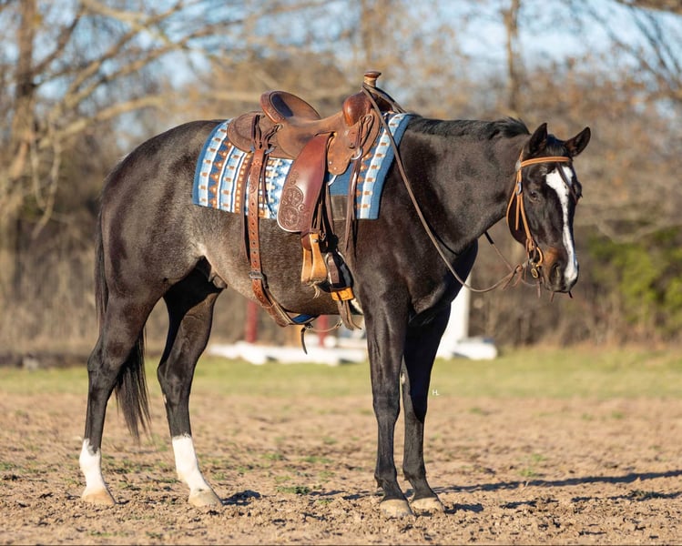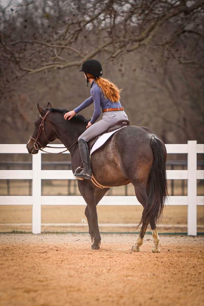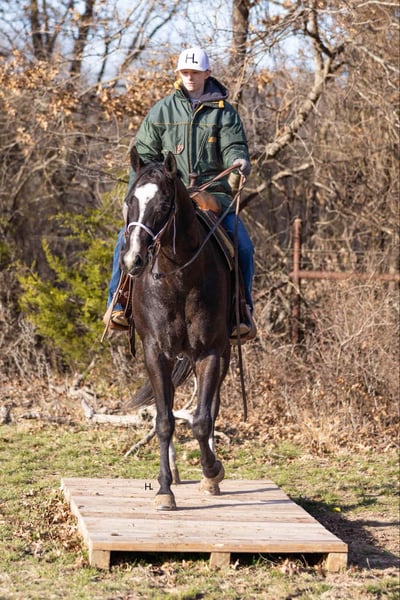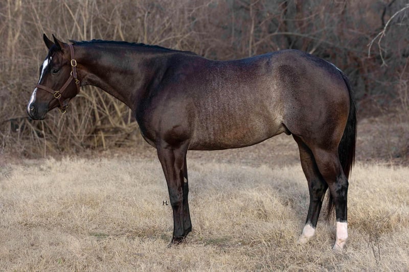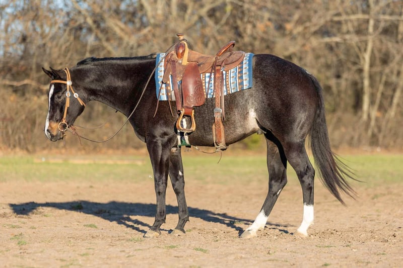 NLINE AUCTION Place your bids at www.PlatinumEquineAuction.com Starting Bid $3500 Auction ends March 23rd, 2025 Need a new saddle? Check out White Rock Saddles on our website or Facebook! Deacon Blue is a jaw dropping 3yr old, 15.2hh, bay roan AQHA gelding by the prestigious and out of a producing daughter of Gotta Get Tuff (full sibling to A Sudden Impulse). Pedigree aside, with his looks, demeanor, and ability, Deacon has absolutely everything going for him to be the next superstar in your lineup. Whether you’re wanting to hit the show pen or just looking for your next up and comer to enjoy at home, this good looking gelding is ready to step up to the plate. Deacon was started in a pleasure program slowly and correctly the beginning of his 2yr old year and then he was transitioned to more of the ranch versatility side of things. All of Deacon’s gaits are smooth and comfortable to ride with an untapped cadence that will surely have everyone drooling that watches him go around. He is soft in his face, his transitions are smooth, and he retains things you teach him well. There is very rarely a day you have to show this gelding something twice as Deacon has a pleasing attitude and all of the ability. Deacon has been ridden both western and english and has been introduced to going over fences. Over fences, Deacon is bold and shows all of the traits that he would not only enjoy doing it but be successful at it. No matter what discipline or direction you decide to finish him out; pleasure, ranch riding, rail, trail, equitation, hunter-jumper; Deacon has the physical ability but most importantly the mind to do it all. If the show pen isn’t your thing, Deacon could easily be turned into the best leisurely riding and trail riding partner one could ask for too. Yes he has everything going for him to be a fantastic performance horse, but most importantly Deacon has the mind to do and be whatever you choose to mold him into. Deacon has been ridden outside an extensive amount of time compared to most bred like him and he’s shown to love it just as much as going around fancily. While Deacon has been with us, we’ve exposed him to all kinds of obstacles and situations to help shape him into the well rounded and versatile gentleman he aspires to be; bridges, tarps, water, vehicle traffic, machinery, hauling off property, farm animals, cattle, flags, etc.. With each obstacle and each situation, Deacon handled it all with the maturity of a horse triple his age and worked through each with a certain boldness and sureness that makes us love him even more. On the ground, Deacon is a perfect gentleman for all daily handling. He loves his grooming time, will stand still for bathing, and your farrier will love him too. You can saddle Deacon tied, cross tied, or ground tied, and he will stand patiently for bridling and mounting as well. Deacon has always hauled with no issues and is ready to load up and unload anytime. To just be around and spend time with Deacon is to love him as his personality is that of a teddy bear. He is an extremely kind and loving gelding that just wants to please and be around you. Deacon is UTD on all routine care, has no previous health or soundness issues and has no scars or blemishes. This would be the perfect DIY horse for an amateur or knowledgeable youth rider that’s looking for their next all around mount that can be enjoyed both in the arena and out or an absolute perfect horse for someone looking for a good minded youngster with the potential to be turned into their next forever-do it all mount. This gelding has been nothing short of a pleasure in our program from riding to handling to everything in between and we know he’ll make someone extremely happy. Feel free to reach out to H Spur Performance & Versatility Horses, Sarah at 817-366-6123 with any questions and to talk about if Deacon might be a fit for you. We invite you to come see, try, and fall in love with Deacon at our home in Weatherford, Tx during the duration of the auction. PPEs are always welcomed and we’re happy to help you set up hauling to wherever you call home if you’re the winning bidder! ONLINE AUCTION Place your bids at www.PlatinumEquineAuction.com Starting Bid $3500 Auction ends March 23rd, 2025 Need a new saddle? Check out White Rock Saddles on our website or Facebook!