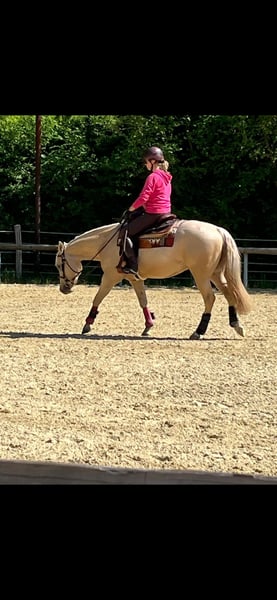 Due to upcoming emigration plans, I am offering my wonderful, sweet, and beautiful 4-year-old AQHA Palomino gelding for sale. There is no sweeter or more well-behaved Quarter horse; he is a friend for life! He comes with a stunning Palomino color and a truly beautiful, muscular Quarter exterior. He is all-round Western trained, suitable for Reining and Ranch Riding. He would also be very suitable for trail riding. He is calm on outdoor rides and loads easily onto the trailer and truck. All vaccinations are up to date, and he is well-behaved at the dentist. At 2 years old, he was X-ray approved for sport. He has an excellent pedigree. If you are looking for an uncomplicated, talented Quarter horse in a fantastic, eye-catching color, this is your horse. Naturally, he falls into the higher price range!
