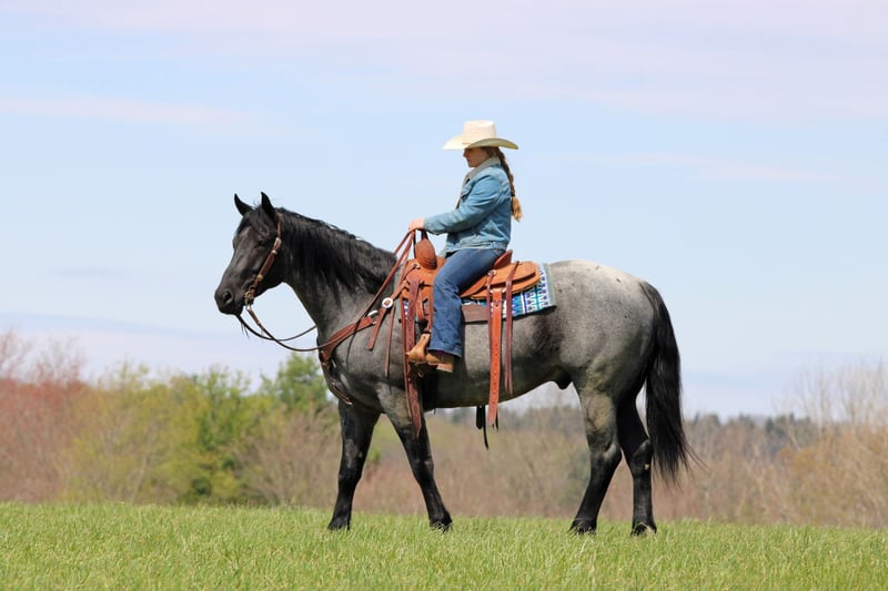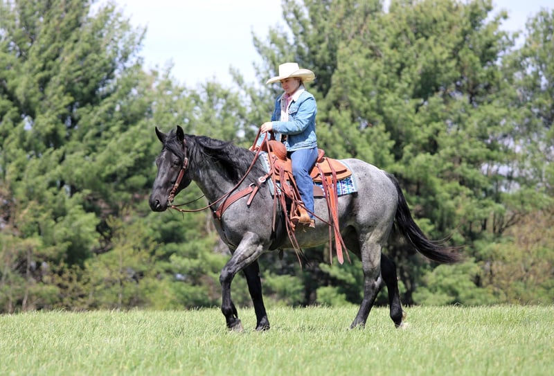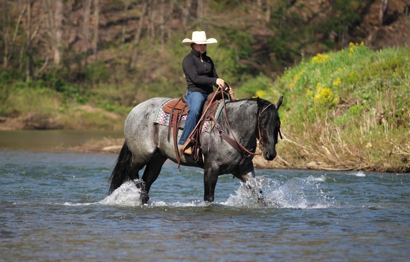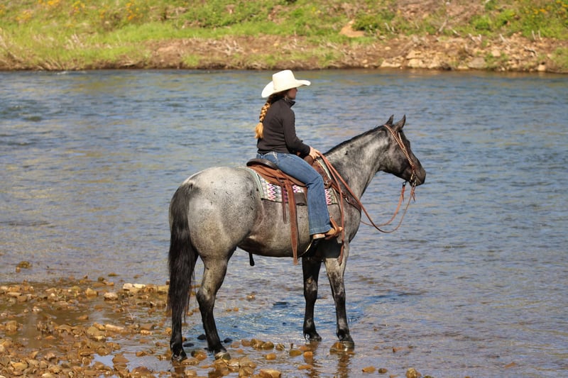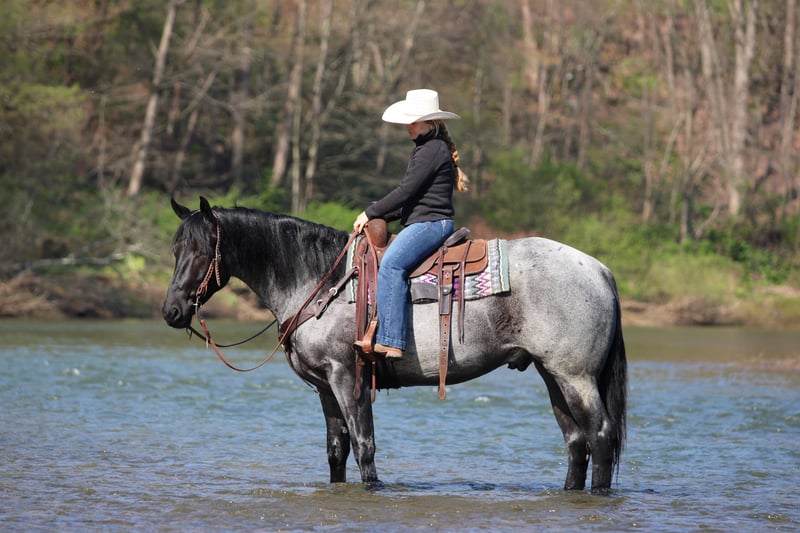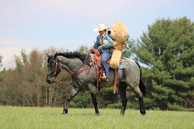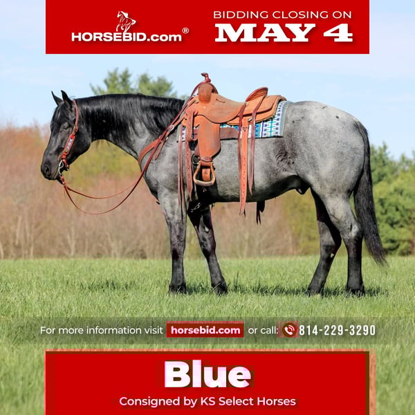 ▪️▫️◾️𝐭𝐡𝐞 𝑴𝒂𝒚 𝐒𝐞𝐥𝐞𝐜𝐭◾️▫️▪️ Happening now thru MONDAY | MAY 4th - Available EXCLUSIVELY on HorseBid's website! For more details and to register visit: www.Horsebid.com CONSIGNOR CONTACT: KS Select Horses 814-229-3290 LOCATION: Clarion, PA BREED: QH REGISTERED: Yes REGISTERED NAME: MP Little Blue Kitty COLOR: Blue Roan HEIGHT: 15.2 AGE: 4 GENDER: Gelding Mp Little Blue Kitty or as we call him around the barn Blue is a True Blue Roan Registered Quarter Horse Gelding. Wow Check Him Out!! Blue is as good looking as they come! Not only is he super good looking but he rides the very best and has a super good mind and is very quiet and gentle to ride and be around making him the whole complete package! He is registered with the American Quarter Horse Association and was foaled in 2022 making him 4 years old. Blue has a bright future and has his whole life ahead of him. He may be 4 years old but will ride and act like a horse 3 times his age. You will love his training and how gentle he rides. He has a great one hand neck rein. Good stop and side pass. Super smooth trot and slow easy to sit lope. Blue rides great in the arena or outside in the open. Lopes nice circles in the arena and hits his correct leads each way. Blue has been trail ridden many miles outside and is a great trail horse. Watch us ride him in the creek and the obstacles. He never refuses or hesitates goes wherever you ask him and never complains. Blue is also good when it comes to working cattle on the ranch. We have rode him down town and he is good with traffic and busy environments. If you want to ride in first class and have one of the prettiest horses to ride then Blue is the one for you. Dont miss out on Blue! Horses like him are very hard to find. Blue just had a health exam on April 20th which he passed with flying colors. We can help arrange delivery anywhere in the United States. Call or Text Kris at 814-229-3290. Thank You and God Bless