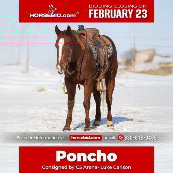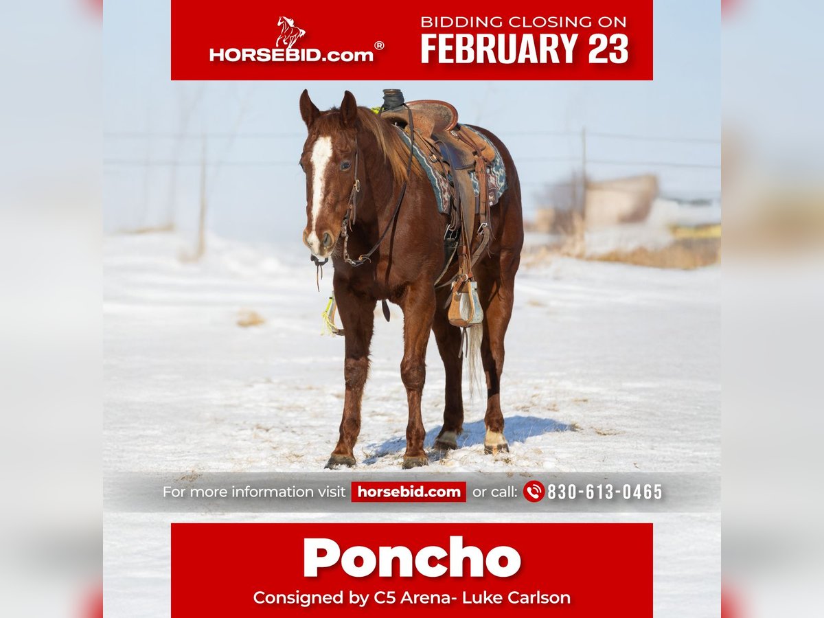 💎 𝐓𝐇𝐄 𝓓𝓲𝓪𝓶𝓸𝓷𝓭 𝐒𝐇𝐎𝐖𝐂𝐀𝐒𝐄 💎 Happening now thru MONDAY | FEBRUARY 23rd - Available EXCLUSIVELY on HorseBid's website! For more details and to register visit: www.Horsebid.com CONSIGNOR CONTACT: C5 Arena- Luke Carlson 830-613-0465 LOCATION: Decorah, IA BREED: Quarter Horse REGISTERED: Yes REGISTERED NAME: Rockin Cool Cat COLOR: Sorrel HEIGHT: 14.2 AGE: 4 GENDER: Gelding If you are looking for your next rope or ranch horse, Poncho is your guy! He loves to put his hind end in the ground! He has a solid start on the heel side and breakaway.
