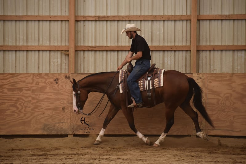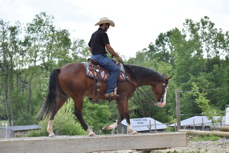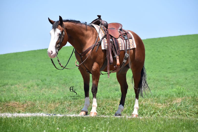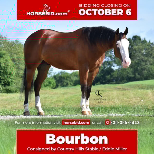 🍂 𝓐𝓾𝓽𝓾𝓶𝓷 𝑨𝑳𝑳 𝑺𝑻𝑨𝑹 𝑳𝑰𝑵𝑬𝑼𝑷 🍂 Happening now thru MONDAY | OCTOBER 6th - Available EXCLUSIVELY on HorseBid's website! For more details and to register visit: www.Horsebid.com CONSIGNOR CONTACT: Country Hills Stable / Eddie Miller 330-365-6443 LOCATION: Baltic OH BREED: AQHA REGISTERED: Yes REGISTERED NAME: Take Out The Gunman COLOR: Bay HEIGHT: 14.3 AGE: 4 GENDER: Gelding Bourbon is a one of a kind, sweet, sweet gelding! He has been a gem to work with and has been a pleasure to have in my program. Bourbon has many miles of trail experience, including several wagon train trips with large groups of horses and was a true gentleman! He is safe in the traffic, on busy roads and riding thru town. He is used to balls, tarps and bull whips. Bourbon has been ridden by beginners and is very trustworthy. He willingly comes up to you in pasture and is happy to greet everyone who enters the barn. Bourbon patiently stands to tack, bathe, clip and shoe. He has been ridden a lot in the arena and moves gracefully thru all gaits, whether in English or Western tack. He will side pass to the mounting block for ease of mounting. Bourbon will neck rein; he jumps, pivots and stops nicely. He has been showed in Ranch riding and brought home some ribbons, so whether you're looking for a horse to pleasure ride on weekends, take him to the show ring or for your kids to tag along, Bourbon will be there for you, and he will look HANDSOME doing it!