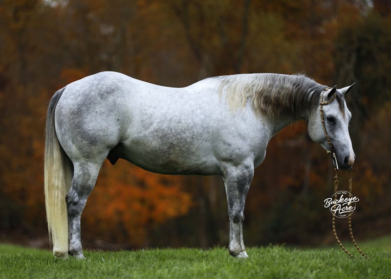 Wow oh wow, Infinity is one of those horses that truly stops you in your tracks. From his beautiful dappled grey coat to his couple of white socks and that cute little snip on his nose, he is the full package. Infinity is a 2021 model AQHA gelding standing a strong 14.3 hands tall, built with the kind of conformation that turns heads anywhere you take him. Whether you are looking for that wow-factor trail partner, something to step into the ranch classes, or simply a horse that makes you proud every time you swing a leg over, he checks all those boxes. Infinity has seen the miles and handles them like a seasoned veteran. He has been down countless trails through thick woods, up and down hills, across logs, through creeks, and out on state roads in traffic without batting an eye. He goes where you point him and never gets bothered about what is around the next corner. He has also been used to check cows and fence lines, making him handy and confident with real-life work. One thing we appreciate is that Infinity does not need to be ridden every day to stay the same. Leave him sit for a few days and he comes out willing, level-headed, and ready to go. He has been ridden Western, English, and bareback, and takes everything in stride. His movement is extremely smooth and comfortable, from the walk to the trot, extended trot, and lope. He has been ridden in the indoor and outdoor arenas, knows his leads, and side-passes right up to the mounting block to make getting on easy. He has seen jugs, tarps, whips, and all kinds of obstacles and handles them all calmly. Infinity is up to date on shoeing, vaccinations, and deworming, making him ready to go for any new home without worry. This is the type of gelding you can enjoy on the trails one day, take to a ranch show the next, or let the kids ride around and have fun. He is safe and suitable for riders of any level, from beginners to seniors to experienced riders wanting something steady and classy. Infinity loves attention and is the kind that greets you at the gate, hoping for scratches and company. He is good for the farrier, stands well in the wash bay, and is simply an enjoyable horse to be around in every way. If this sounds like the horse you have been looking for, feel free to reach out to Duane at 330-231-2324 for more information or to schedule a day to stop by and see him in person.