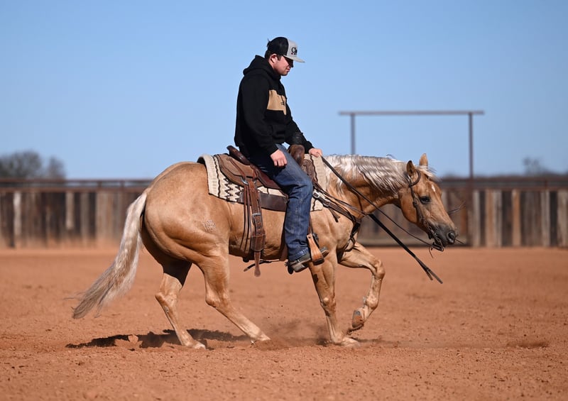 𝐍𝐀𝐓𝐄 𝐁𝐀𝐋𝐋𝐄𝐑𝐈𝐍𝐎 𝐇𝐎𝐑𝐒𝐄 𝐂𝐎'𝐬 ★ ℝ𝕀𝔸𝕋𝔸 𝔹𝕌ℂ𝕂𝕃𝔼 ★ 𝑺𝒉𝒐𝒘𝒄𝒂𝒔𝒆 Happening now thru SATURDAY | FEBRUARY 28th - Available EXCLUSIVELY on HorseBid's website! For more details and to register visit: www.Horsebid.com CONSIGNOR CONTACT: Nate Ballerino Horse Co 254-716-9588 LOCATION: Waco, TX BREED: Quarter Horse REGISTERED: Yes REGISTERED NAME: HSR DUALING METELES COLOR: Palomino HEIGHT: 14.3 AGE: 5 GENDER: Gelding HSR Dualing Meteles LTE $189.00 NRCHA HSR Dualing Meteles aka Lincoln is Gorgeous Gelding by Meteles Cat who won over 437 k and produced in excess of 2 million and out of a money earring and producing Daughter of Dual Rey. Lincoln has been trained and successfully shown in the Cowhorse. Lincoln is a special gelding that shows a lot of natural talent and style. He's incredibly eager to please, stays soft, super trainable and has the heart and athleticism to back it. Lincoln is Currently in Heel Horse training with Clyde Bolejack and has been lighting started on calves. He is showing extreme talent and would excel in the rope horse Events. He takes both leads, has correct spin's and a deep sliding stop. Walks out on a loose rein, has a soft steady trot and a pleasant lope. He is eligible for NCHA Super Stakes, Breeders Invitational, PCCHA Stakes, NRCHA Stallion Stakes, Gold Buckle Futurity, Royal Crown Roping, Riata Buckle, Solo Select Incentives. Please Call Nate at 254-716-9588 with any questions. Nation wide shipping can be arranged.