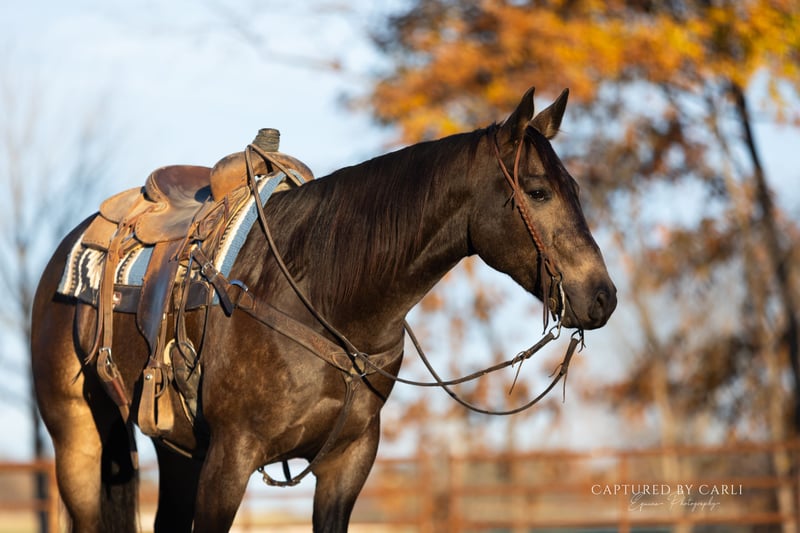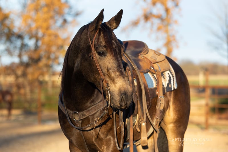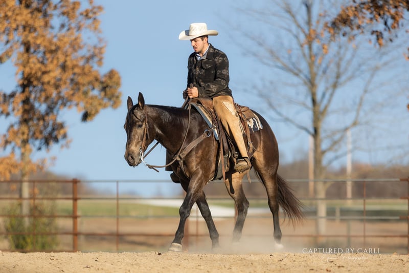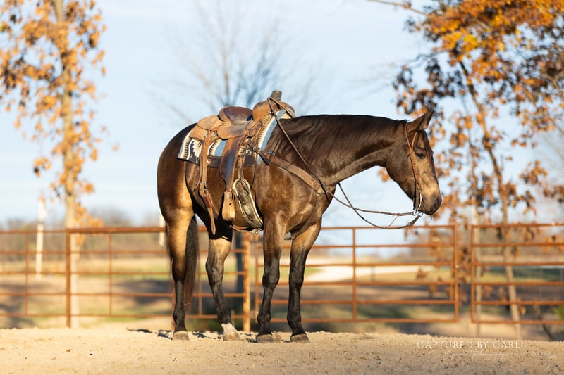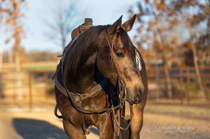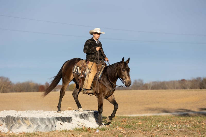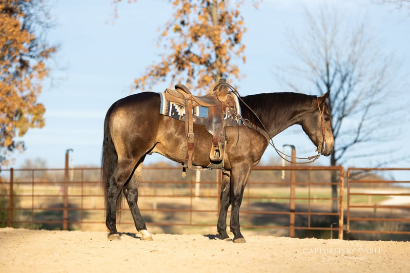 𝐉𝐨𝐧𝐞𝐬 𝐅𝐚𝐦𝐢𝐥𝐲 & 𝐕𝐞𝐫𝐬𝐚𝐭𝐢𝐥𝐢𝐭𝐲 𝐇𝐨𝐫𝐬𝐞𝐬' 🍂𝑳𝒆𝒈𝒆𝒏𝒅𝒔 𝒐𝒇 𝒕𝒉𝒆 𝑭𝒂𝒍𝒍🍂 Happening now thru MONDAY | DECEMBER 8th - Available EXCLUSIVELY on HorseBid's website! For more details and to register visit: www.Horsebid.com CONSIGNOR CONTACT: Jones Family and Versatility Horses 618-535-9966 LOCATION: Lewistown, IL BREED: Quarter Horse REGISTERED: Yes REGISTERED NAME: HQH A GREEDY RIO COLOR: Buckskin HEIGHT: 15 AGE: 4 GENDER: Gelding Introducing Rio, a striking and uniquely marked dark buckskin gelding with bronze undertones, black points, and strong dark feet. He’s the kind you notice with great bone, eye catching shape, and a classy, athletic build that promises ability and longevity. At 4 years old and standing 15 hands, Rio has all the tools and the mind to go far. Rio has been used in a ranch setting, and his foundation reflects real work and good handling. He rides with a smooth neck rein, has a correct turnaround, and deep, willing stop. He walks, trots, and lopes soft and balanced, and shapes pretty circles with ease. He’s already been used to drag calves and has seen the sights of ranch life confident, willing, and taking it all in stride. This young gelding has a bright future in front of him. He would make a standout ranch versatility prospect, and also has the movement, mind, and presence to go on as a rope horse or even cross over into the English ring. He’s correct, athletic, and stylish the kind that gets noticed in any arena. Rio has been ridden by different riders and has a really fun handle and feel! He rides out alone or in a group, and stays steady whether you’re in town, on the ranch, or out on the trail. He’s confident around tarps, gunfire, farm equipment, man made obstacles, and all the everyday commotion that builds a reliable horse. Easy to catch, good minded, and pleasant to be around. He’s sound, solid, and built to last with the kind of willing attitude and athletic ability that opens the door to many disciplines. With Hollywood Dun It and Chicks Beduino on his papers, his pedigree speaks for itself: cow, class, and talent. Rio is a cool, versatile young gelding with the makings of a special one. He has all the ingredients looks, foundation, quiet mind, and future and we are proud to offer him.