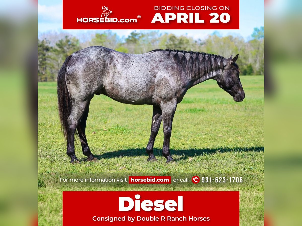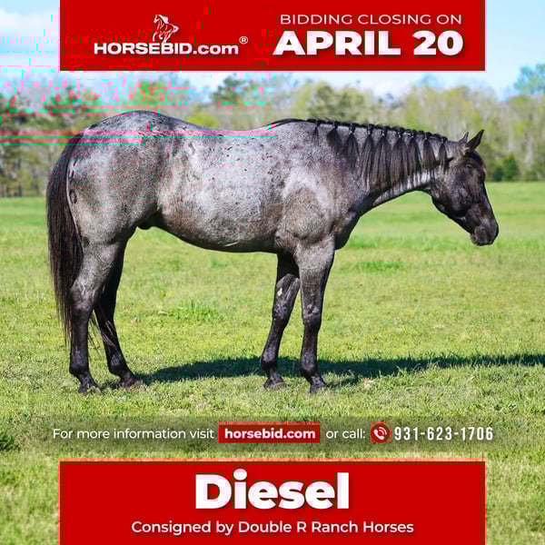 ⚜️𝐭𝐡𝐞 𝓔𝓵𝓲𝓽𝓮 𝐒𝐩𝐫𝐢𝐧𝐠 𝐂𝐥𝐚𝐬𝐬𝐢𝐜⚜️ Happening now thru MONDAY | APRIL 20th - Available EXCLUSIVELY on HorseBid's website! For more details and to register visit: www.Horsebid.com CONSIGNOR CONTACT: Double R Ranch Horses 931-623-1706 LOCATION: Lyles, TN BREED: Quarter Horse REGISTERED: Yes REGISTERED NAME: LC HECKUVA LEO 460 COLOR: Blue Roan HEIGHT: 15 AGE: 5 GENDER: Gelding “Diesel” This is the gelding that you can throw a saddle on any day of the week, point in any direction, and know you’re in good hands! This stunning true blue roan AQHA gelding is as easy on the eyes as he is steady in the saddle. He’s built right, and absolutely gorgeous- with a friendly, gentle personality that makes him so enjoyable to be around! Registered AQHA name, LC HECKUVA LEO 460 with some impressive bloodlines, this 5 year old gelding stands 15 hands tall, has plenty of experience, and a very good mind. Diesel is naturally friendly and loves attention, he is always ready to greet you at the gate. If you enjoy being around horses that are “in your pocket” you’ll love him. He has a gentle soul and a kind eye, and he is ready to be your best bud. He’s easy on the ground, stands quietly to groom, saddle, and mount, and has excellent manners. He loads, ties, bathes, and stands for the vet and farrier without a fuss. Diesel rides soft in the bridle, responds to leg cues, and is smooth and fun to ride! He has been trained to side pass over to pickup his rider on the mounting block, which is handy. Diesel has been a trusted trail partner with us, He’s safe, solid and has a great brain! He’s been one of our go-to choices when new riders want to go out or if we want to pack a kid along. He’s been ridden a little bit of everywhere, out on the trails crossing water, climbing steep rocky hills, checking cows and fences, arena riding, moving steers in the pasture as well as riding around downtown in the busy traffic! Diesel is sure-footed, calm, and confident. New scenery doesn’t bother him, passing wildlife, or navigating through rough terrain, he handles it all with patience and a steady step. It’s easy to relax and enjoy the ride on a nice horse like him. You’ll feel at ease on his back! We have put him in a variety of different situations, with an assortment of riders at different levels, and he remains patient and proves himself reliable and trustworthy every time. He’s also been started roping, and has done a little bit of English, just for the fun of it! Diesel is versatile, well rounded, adaptable, and ready to succeed in whatever direction his next owner wants to take him. Even if that’s a best friend in horse form! It’s hard to find everything Diesel brings to the table- all in one horse. To sum it all up, He’s just plain good. And in today’s world, that’s hard to find! Diesel passed his PPE by Equine Vet Todd Co Animal Clinic with flying colors! 📞 Contact Rachel Vick at 931-623-1706 to learn more or schedule a visit to meet Diesel in person.