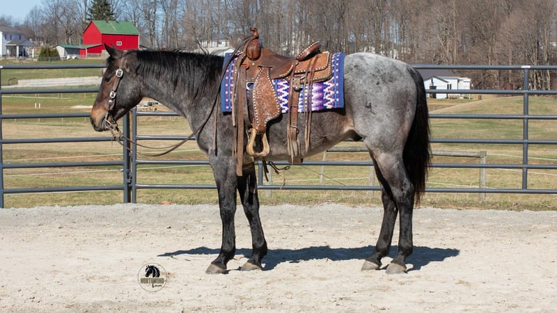 ⚜️𝓽𝓱𝓮 𝐆𝐎𝐋𝐃 𝓢𝓮𝓵𝓮𝓬𝓽⚜️ Happening now thru MONDAY | MARCH 23rd - Available EXCLUSIVELY on HorseBid's website! For more details and to register visit: www.Horsebid.com CONSIGNOR CONTACT: North Wind Farm 330-473-3521 LOCATION: Fredericksburg, OH BREED: AQHA REGISTERED: Yes REGISTERED NAME: Cowboys Blue Skipper COLOR: Blue roan HEIGHT: 15 AGE: 5 GENDER: Gelding Cowboys Blue Skipper, a 5 yr old registered AQHA blue roan gelding standing at 15hh tall. Skipper is well trained to ride. He is a great trail horse! He loves people, attention and is always down for a trail ride! He has a gentle personality. Skipper enjoys turnout and is easy to catch in the pasture. He gets along good with other horses. He will stands nicely for grooming, tacking up, the farrier, and for getting bathes! Skipper is a wonderful trail horse. He will cross creeks, he steps over logs, and watches his step going up and down hills. He has been rode on the state route and he is traffic safe! He is used to being around dogs and atvs! He will go through the obstacles, and will drag the sled and milk jugs! Skipper rides in the arena as well. He picks up both his leads, stops, and backs up! He mostly direct reins and moves some off of leg pressure. Skipper is a point and go type of horse! He is a great trail companion looking for his next partner! He is safe and sound! ⭐️North Wind Farm is renowned for its quality trail and all-around horses. Our horses are versatile and can excel in any discipline, making them perfect for riders of all levels. Whether you're looking for a reliable trail companion or a horse that can perform in various disciplines, North Wind Farm has the perfect match for you. Our commitment to excellence and passion for equine care ensures that each horse is well-trained, healthy, and ready to meet your needs. Contact us @ Tim (330) 600-8840 Lisa (330) 473-3521