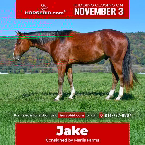 ⚜️𝐓𝐇𝐄 𝐅𝐀𝐋𝐋 𝐇𝐄𝐑𝐈𝐓𝐀𝐆𝐄 𝐂𝐋𝐀𝐒𝐒𝐈𝐂⚜️ Happening now thru MONDAY | NOVEMBER 3rd - Available EXCLUSIVELY on HorseBid's website! For more details and to register visit: www.Horsebid.com CONSIGNOR CONTACT: Marlis Farms 814-777-0607 LOCATION: Rebersburg, PA BREED: Quarter Horse REGISTERED: No COLOR: Bay roan HEIGHT: 15.1 AGE: 4 GENDER: Gelding “Jake” is a 4 year old 15.1 hand Quarter horse gelding. Jake is a super laid back and sweet guy that almost anyone can ride and get along with. Don’t let his age fool you, he is gentle and wise beyond his years! In the arena, Jake has a nicely balanced walk, trot and canter. He would be an excellent choice for someone looking to do fun shows, trail competitions, or ranch classes. Jake neck reins, side passes, picks up both leads, will lope a nice circle, and has a good stop! He is very well desensitized, carries a flag, doesn’t mind a tarp, and is use to loud heavy equipment around the farm. He has been exposed to cattle, goats, dogs and all the usual farm life. On the trails he is very solid and dependable! He crosses logs, bridges, and creeks without hesitation and maintains the same quiet, level headed composure! He is traffic safe and has ridden through town and busy streets! At home Jake is simple to get along with, he is an easy keeper, requires no maintenance or special diet! He is sound and clean, no vices. He is excellent for the farrier, vet and dentist. He is quiet in a stall and easy to catch when turn out. Jake loves to ride out and see new places, he is easy to load on a trailer and will load off and stand quietly anywhere we go! If you are looking for a handsome, kind hearted, safe, uncomplicated, all-around partner, here he is! Please feel free to reach out with any questions or to set up a visit to meet Jake! Call Mark @ 814-777-0607