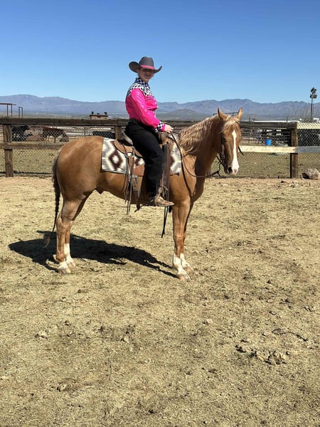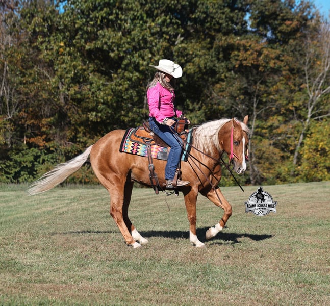 ℳ𝒶𝓇𝒸𝒽 ♦️𝐑𝐈𝐃𝐄𝐑'𝐒 𝐂𝐇𝐎𝐈𝐂𝐄♦️ Happening now thru MONDAY | MARCH 9th - Available EXCLUSIVELY on HorseBid's website! For more details and to register visit: www.Horsebid.com CONSIGNOR CONTACT: Adams Horse & Mule Co. 606-308-2461 LOCATION: Mt Vernon, KY BREED: AQHA REGISTERED: Yes REGISTERED NAME: Gunners Whimpy Chex COLOR: Palomino HEIGHT: 15.1 AGE: 5 GENDER: Gelding CHEX this guy out!!! Gunners Whimpy Chex is a 2021 model reg AQHA, gelding that is standing 15.1hh with a very stocky build. Gunner has something to offer everyone… if you want pretty, he is wearing a golden coat, has a heart of gold and has four white socks with a thin blaze to go along with it, making a perfect combination of chrome and class. If you are a pedigree person… Gunner has an all-star lineup in his family tree, ML Gunnerito who is sired by the legendary Pale Face Dunnit, Hollywood Dun It, Colonels Smoking Gun, Gallo Del Cielo (AKA Rooster) and Nu Check To Cash… and he only gets more impressive once you get in the saddle! To start with Gunner is trained to lay down on cue. He knows all the reining maneuvers and would be a great horse to put in the ranch shows! He lopes nice circles, slowly on a draped rein, has a great stop, spins both ways, side passes to open/shut gates and has a good reverse. Gunner has a great mind, he is very laid back and loves attention. He enjoys being pampered by the kids whether that be a spa day with a bubble bath or getting glittered up for a photoshoot. Although he is a preppy guy, he is always up for a fun trail ride through the mud and rough country! Gunner has carried the kids through the rough rocky terrain, deep water, thick mud and up/down steep slopes. He has been ridden in several different states, including Texas and the deserts of Arizona. Gunner never gets in a hurry and is very sure footed making him a great ride for a beginner type rider. Gunner has been roped off of out of the box on the heel side and he will put you in position to get an honest shot at the heels every time. He has been ridden around the ranch, herded, sorted and pasture roped. Things are always calm and quiet out on the trails and around the ranch but don’t worry, Gunner knows the sound of a roaring rodeo crowd of 3000 people, screaming and cheering as the speakers blare Kid Rock’s song “Born Free”, as he lopes around the arena carrying the flag at the grand entry. While at the rodeo Gunner was been used to sort, pen and load rodeo bulls. The girls also used him to give “pony rides” on at 4 different rodeos. They had all ages of kids and adults stand in line for a ride on their horses. Gunner has been ridden down the highways, through town, the drive thru, by Walmart and he will be traffic safe! He has been under English tack and will go over the rails with ease. Gunner is not spooky and has been around tarps, wind dancers, bull whips and gun fire. Gunner has been Movie Star good looks, an All-Star pedigree, Rideability, Safe, Smart, Experienced, Versatile… yes he certainly does CHEX all of the boxes!!! Gunner accompanied by our 2-week guarantee, sells with a fresh PPE and X-rays. For more info or to come see him in person, contact Eric with Adams Horse & Mule Co. at 606-308-2461. Located in Mt. Vernon, KY.