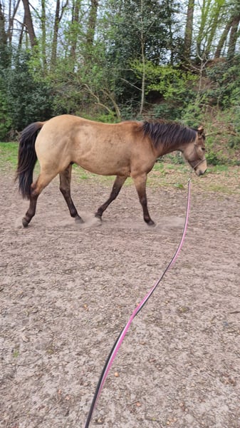 Met pijn in het hart bied ik mijn bijna 5-jarige Quarter x Appaloosa ruin aan. Hij is in mijn bezit sinds hij wean was. Hij is momenteel ongeveer 1,55 m groot en loopt hoefbevangen. Helaas vinden we niet echt de klik en komen we in de opleiding daardoor niet verder. Vanaf de grond werkt hij fijn mee en reageert hij op de kleinste lichaamstaal- en stemsignalen. Daarnaast is hij smederij- en laadtraam, is gevaccineerd en heeft onlangs nog een gebitscontrole gehad. Tot nu toe is hij alleen vanaf de grond gereden. Hij is zeer gevoelig, dus absoluut niet geschikt voor beginners. Voor meer informatie kunnen we dit graag in een persoonlijk gesprek bespreken. Geen noodverkoop, prijs staat voorop.