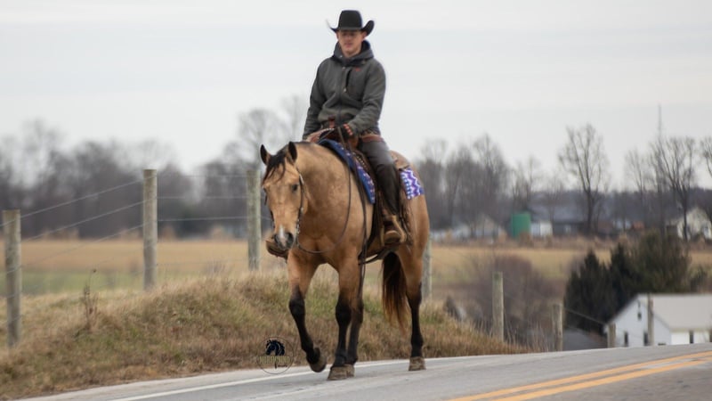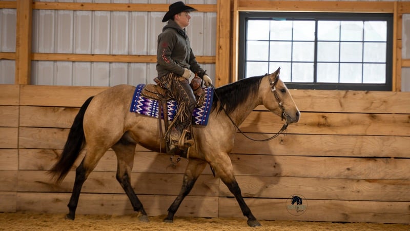 ❤️🔥𝑩𝒆 𝑴𝒊𝒏𝒆 𝐒𝐄𝐋𝐄𝐂𝐓❤️🔥 Happening now thru MONDAY | FEBRUARY 9th - Available EXCLUSIVELY on HorseBid's website! For more details and to register visit: www.Horsebid.com CONSIGNOR CONTACT: North Wind Farm 330-473-3521 LOCATION: Fredericksburg, OH BREED: AQHA REGISTERED: Yes REGISTERED NAME: Reds Shady Bill COLOR: Buckskin HEIGHT: 15.1 AGE: 5 GENDER: Gelding Introducing REDS SHADY BILL “ RIO” is a 5 yr old registered AQHA buckskin gelding standing at 15.1hh! Rio is very well trained and very well mannered! He has a gentle personality and is very easy going! He stands nicely for grooming, tacking up, and for getting bathes! He likes being turned out in the pasture and is easy to catch! He picks up his feet good and stands well for the farrier!Rio is an easy keeper and requires no special maintenance! He rides great in the arena as well as on the trails! He has an easy to ride walk, trot, canter! He moves off of leg pressure, neck reins, and stops easily! He will pivot and side pass, He rides Western as well as bareback! He can also be rode bridles! He rides great out on the trails! He will cross creeks, steps over logs, and is surefooted going up and down hills! He is used to being around dogs and atvs! We have rode him out on the state route and he is traffic safe! He is not easily spooked and the same horse every time you ride him! He will cross all the obstacles as well! He is a seasoned trail horse and has amazing talent in the arena! He is the perfect ranch trail prospect! He could go in any direction! He is safe for your family but fun enough for everyone!