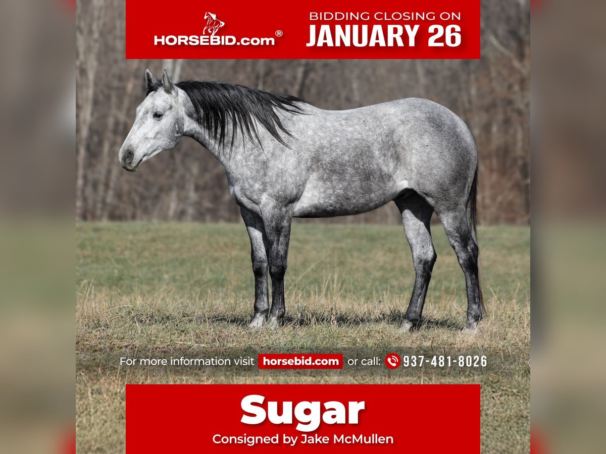 𝐉𝐀𝐍𝐔𝐀𝐑𝐘 ⭐️𝑨𝒍𝒍 𝑺𝒕𝒂𝒓 𝑳𝒊𝒏𝒆𝒖𝒑⭐️ Happening now thru MONDAY | JANUARY 26th - Available EXCLUSIVELY on HorseBid's website! For more details and to register visit: www.Horsebid.com CONSIGNOR CONTACT: Jake McMullen 937-481-8026 LOCATION: Berea, KY BREED: AQHA REGISTERED: Yes REGISTERED NAME: SQH Sugar Wood COLOR: Dapple Grey HEIGHT: 15.2 AGE: 5 GENDER: Gelding SQH Sugar Wood is sweeter than candy! With those big dapples, sweet personality and rideability, he is sure to win anyone’s heart! With his stout build he is built for the long haul and with his sweet personality he is one that you will not want to leave! Sugar is a gorgeous dapple grey gelding that is standing 15.2h+ tall. He registered in the AQHA, is a 2021 model and will weigh over 1250lbs. Sugar is Mr. Personality as he has never met a stranger and is easy to handle! Sugas is a great trail horse, he will handle any obstacle on the trails from deadfall to slick rocky surfaces to steep slopes… he takes his time and navigates it all with safety in mind. He has been exposed to all kinds of wildlife and works well with stock dogs. If the cows are out or if one is sick and needs doctoring, that is no problem for Sugar. He has been roped off of and will hold what you tie to the horn. He always handles and tacks up gentle… just step right on him and he will walk off gentle with no fuss. He has a smooth jog, lopes pretty circles, takes the correct leads in a nice slow lope, has a good stop and reins a circle each way. From trails to ranch work to a new best friend… Sugar is a horse upon who you can depend! Located in Berea, KY. Shipping available anywhere. For more information call Jake McMullen 937-481-8026