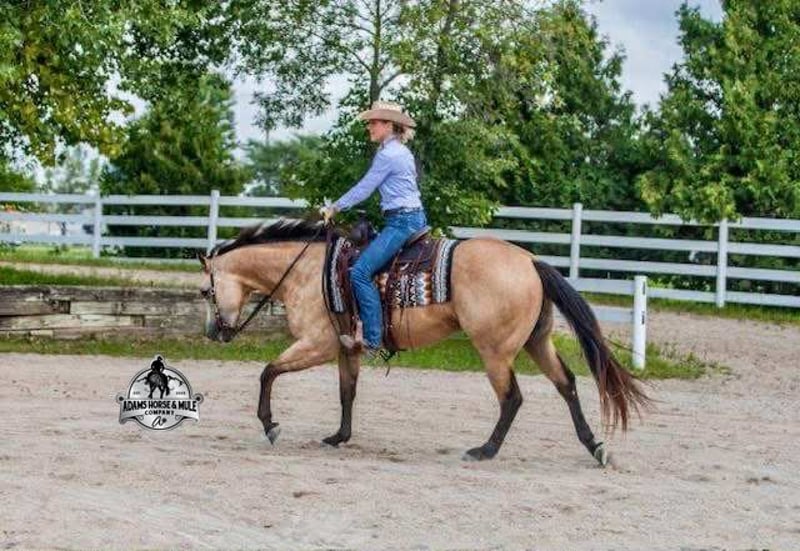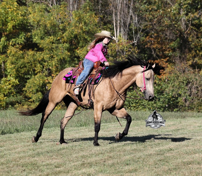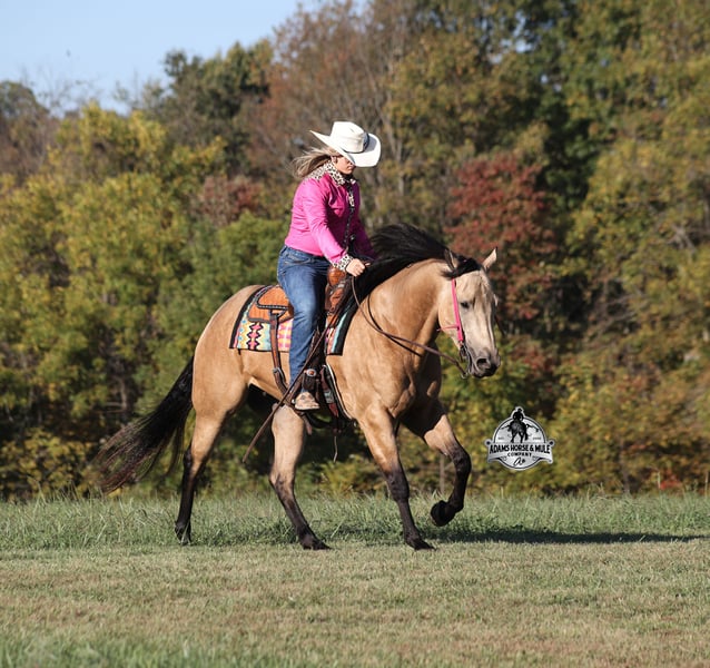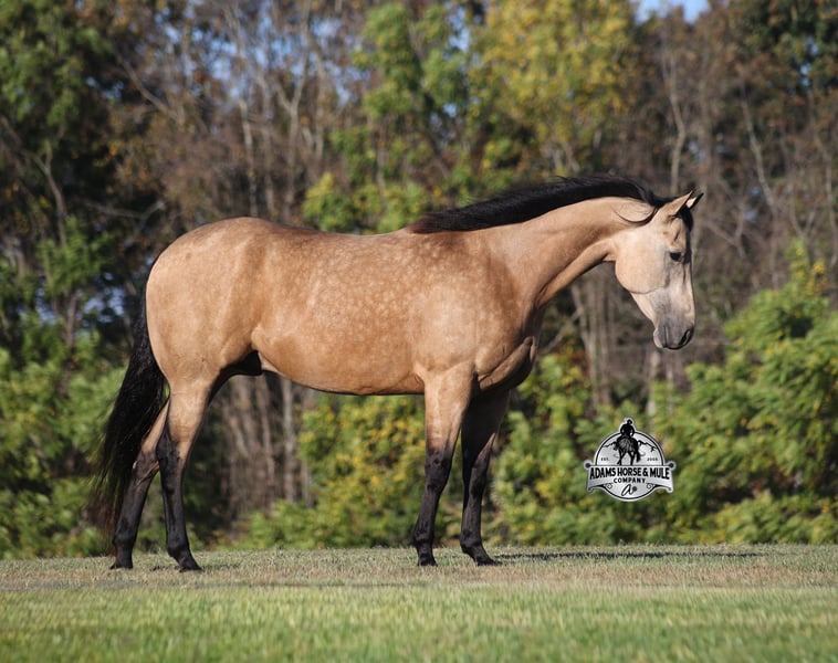 He is consigned to the COWGIRL CADILLACS Sale in Wickenburg, AZ on February 20-21st. You can bid online or bid in person. There is a preview day before the sale or you can come ride him prior to the sale in Mt. Vernon, KY. Register to bid at www.CowgirlCadillacs.com More info at www.AdamsHorseAndMuleCo.com $10000 starting bid Smooth As Pendleton…a little bit of whiskey is said you calm your nerves and ease the tension, just making you more relaxed… there is not a more fitting name for this guy than Whiskey!!! As a 15.2h, 2021 Model with 11 AQHA points to his resume and over $6800 earnings, Whiskey is no stranger to the spotlight as he has been shown extensively and qualified in 2024 for the AQHA World Show in Ranch Trail (which is a ranch and trail obstacle course that involves cattle and log jumps). He rides low headed on a draped rein, lopes perfect circles, takes his leads, does flying lead changes, spins both ways, side passes, and has a good stop. To say the least he has all the moves and maneuvers that a person could dream of. Just as the pressure of the show pen doesn’t bother Whiskey neither does a roaring rodeo crowd of 3000 people, screaming and cheering as the speakers blare Kid Rock’s song “Born Free”, as he lopes around the arena carrying the flag at the grand entry. While at the rodeo Whiskey has been used to sort, pen and load rodeo bulls. The girls also used Whiskey to give “pony rides” on at 4 different rodeos. They had all ages of kids and adults stand in line for a ride on their horses. Obviously, Whiskey knows his way around the show pen and rodeo arena, but this pretty boy loves to get dirty out on the trails, packing the kids through the mud! Whiskey will build your confidence levels out on the trails and make a nervous beginner look like a seasoned pro! He has been trail ridden extensively in multiple states including, Iowa, Minnesota, South Dakota, Kentucky, Tennessee and North Carolina. Steep slopes, deep water, deadfall, boggy mud, all sorts of wildlife… nothing phases him, he is not spooky and he is a master on the trails! Whiskey will take care of his rider in any situation or terrain. Whiskey has been ridden around the ranch, he knows his way around cattle and has been roped off as well. He will hold what you tie to him and doesn’t get nerved up in a bad situation. Whiskey is not spooky and is accustomed to tarps, wind dancers, bull whips and gun fire. Whiskey has been ridden in English tack and will jump across the rails with ease. We have had him through town, the drive thru and he is traffic safe. Whiskey loves to take a bath, get soaped up, get his hair done up in braids and loves to spend time with the kids. If you are looking for a horse to show, a horse to trail ride, a horse to do ranch work on, a horse to jump and a horse to do lessons with… instead of buying six horses just buy the all in one and it will be smooth sailing the rest of the way because nothing is as Smooth As Pendleton!!! Whiskey is available to ride and see in Mt. Vernon, KY until the week of the sale Feb. 16-21. Call for more info or if you have any questions 606-308-2461. He is consigned to the COWGIRL CADILLACS Sale in Wickenburg, AZ on February 20-21st. You can bid online or bid in person. There is a preview day before the sale or you can come ride him prior to the sale in Mt. Vernon, KY. Go to visit our website for more pics and a video www.AdamsHorseAndMuleCo.com AHAMC has been in the horse business and sold horses over the internet since 2005. We have a long track record of success with hundreds of happy customers. We work hard to match riders with the correct horses and specialize in beginner safe, family friendly horses that have been used and checked out by our family! We can set up transportation anywhere in the US and look forward to working with you. Register to bid at www.CowgirlCadillacs.com More info at www.AdamsHorseAndMuleCo.com $10000 starting bid