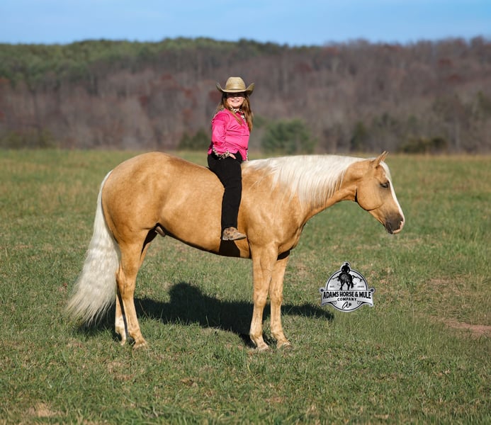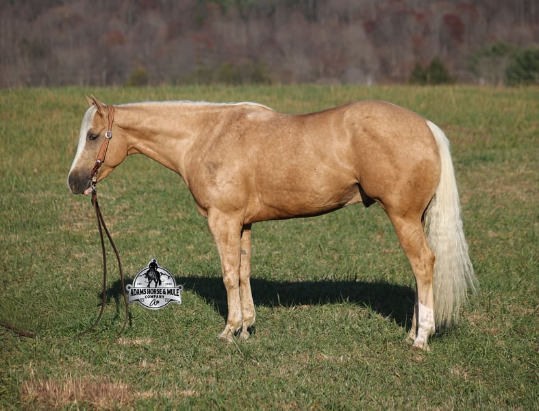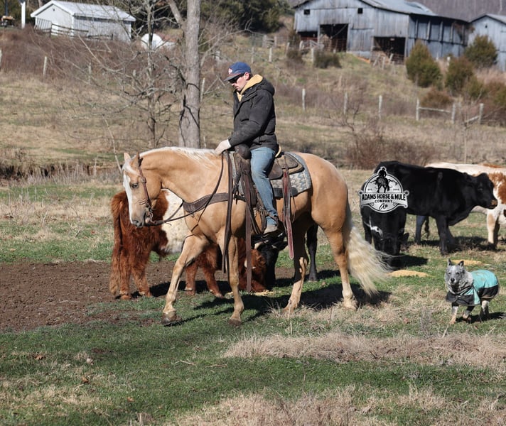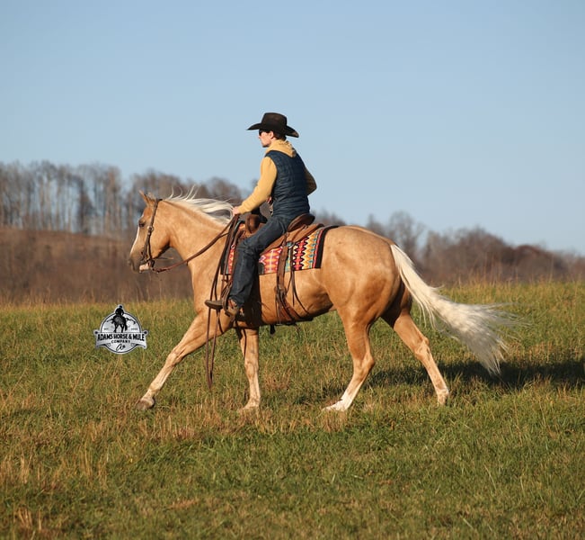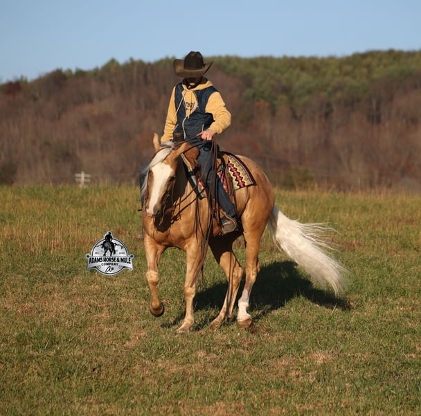 𝐀𝐝𝐚𝐦'𝐬 𝐇𝐨𝐫𝐬𝐞 & 𝐌𝐮𝐥𝐞 𝐂𝐨𝐦𝐩𝐚𝐧𝐲'𝐬 ✷𝑬𝒗𝒆𝒓𝒚 𝑴𝒊𝒍𝒆 𝑨 𝑴𝒆𝒎𝒐𝒓𝒚✷ 𝐄𝐗𝐂𝐋𝐔𝐒𝐈𝐕𝐄 𝐒𝐀𝐋𝐄 Happening now thru MONDAY | FEBRUARY 2nd - Available EXCLUSIVELY on HorseBid's website! For more details and to register visit: www.Horsebid.com CONSIGNOR CONTACT: Adams Horse and Mule Company 606-308-2461 LOCATION: Mt. Vernon, KY BREED: AQHA REGISTERED: Yes REGISTERED NAME: Wrens Blue Moon COLOR: Palomino HEIGHT: 15.3 AGE: 5 GENDER: Gelding If Wren was on the "Tinder" dating app, you'd certainly want to swipe up on his profile!!! This lover boy named Wrens Blue Moon is an amazing 15.3h, 2021 model, AQHA Reg, G-O-L-D-E-N Palomino, gelding that looks great and rides great too! Wren is stout enough to carry a bigger sized rider and gentle enough to carry the little ones as well! The only tricks to this guy are the ones that you ask for! Wren is trained to lay down on command. He has been used out on the ranch in all aspect of ranch work. From roping and doctoring to sorting, he has plenty of cow sense. He has been ridden around Rodeo venues, sorted and loaded the bulls. Lights, the announcers, crowd roaring... nothing phases him! Wren has been roped on out of the box and trails the roping dummy. Wren is totally user friendly to ride as he lopes slow and easy, with the reins draped, in perfect circles. He is very well trained and spins circles correctly both ways and slide stops… he has the moves to go along with the good looks! If the ranch work is done and you just want to go for a relaxing trail ride… steep slopes, rocky terrain, creeks, logs, ditches… he crosses it all with ease and is never in a hurry! He has been started jumping over the rails and logs too. Wren is a horse that can handle any task and will take care of the whole family! Eye appeal, Pedigree, Training, Experience, Versatility, Safety… his profile is complete and he is looking for his soul mate!!! Call for more info Eric 606-308-2461