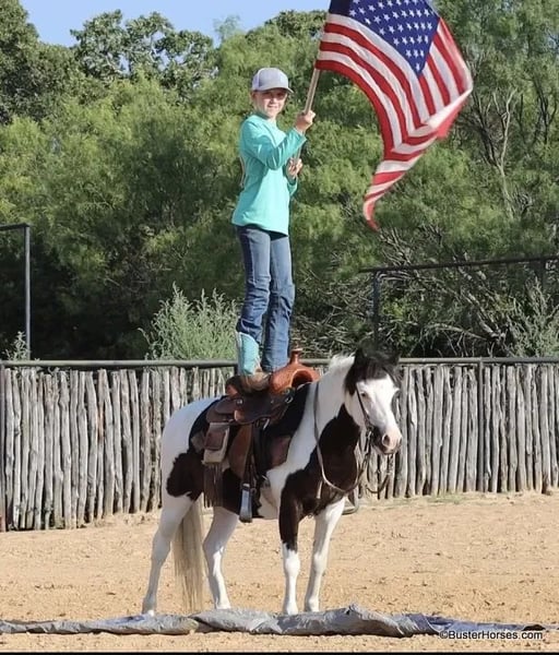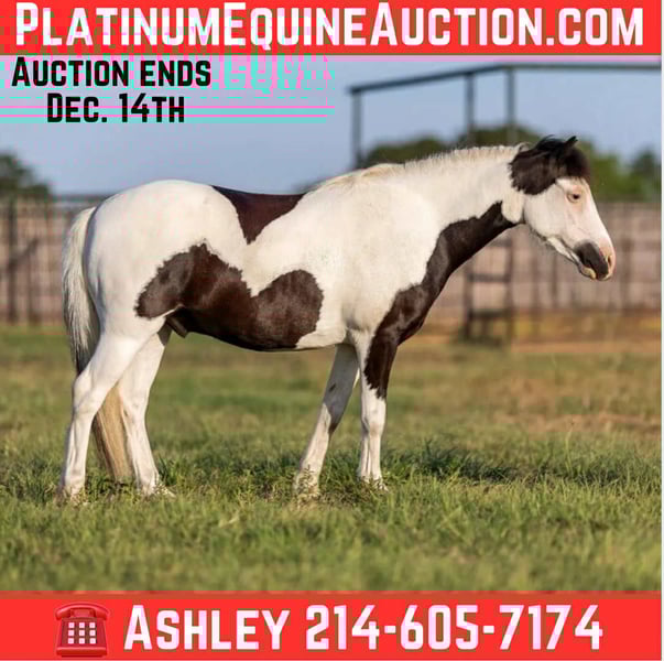 ONLINE AUCTION Place your bids at www.PlatinumEquineAuction.com Starting Bid $3500 Auction ends December 14th, 2025 Need a new saddle? Check out White Rock Saddles on our website or Facebook If your child is looking for a pet dog they can have a relationship with – and also ride – then Casper is your pony. Casper is a 10.3hh, 6 year old black/white paint gelding. This little guy is about as fun, curious, and overly friendly as they come! – hence the name – He loves being with someone and loves having something to do and someone to be with. If you are wanting your kiddo to have that special friend that whineys and comes running when they get off the bus – this is one of those rare ponies that REALLY genuinely loves kiddos, being with you, and doing things with you. He will make many irreplaceable childhood memories. And he is just the perfect size for kids to be able to do it all on their own for many years, without outgrowing him too quickly. My kiddo in the video is 11, and tall for her age, this little guy is stout made and will last the kids for several years. If your kiddo watches the Heartland TV series, and dreams of the liberty work play, than he would be a great little teacher to learn the ropes on. This pony naturally joins up and follows you, and loves doing it. Separate from his super fun personality and being just adorable to have around, Casper also really rides around! He trot and lopes willingly, has a decent little work ethic, not at all the typical punk pony pushy attitude. He naturally carries himself balances and cadenced, is a cute mover, takes both of his leads simply and evenly, and he has a great stop. He travels around on a nice relaxed rein with his ears up. Casper does have a reasonable reserve, and he will go on my daughter’s “Rolex string” (you have to call and ask for an explanation on this definition). Casper is up-to-date- on all cares, was just trimmed this week, his teeth were also done by an equine dentist (right after this video was shot, we’ll try to get additional videos before sale time), he had his sheath cleaned, his ears treated for ticks, and he was also power packed wormed. He is good to shoe as well, but has great feet and goes really well barefoot – if his new owner prefers him to be shod, we can have him shod prior to him heading to his new home. He will arrive at his new home up-to-date and ready to go to work! We are experienced, knowledgeable sellers, and we can help with quickly arranging affordable shipping to any buyer’s location – we have experience shipping worldwide – including regularly to Hawaii, Canada, Mexico, Europe, and South Africa from Weatherford, TX. For more info contact Ashley with Buster Horses 214-605-7174. ONLINE AUCTION Place your bids at www.PlatinumEquineAuction.com Starting Bid $3500 Auction ends December 14th, 2025 Need a new saddle? Check out White Rock Saddles on our website or Facebook