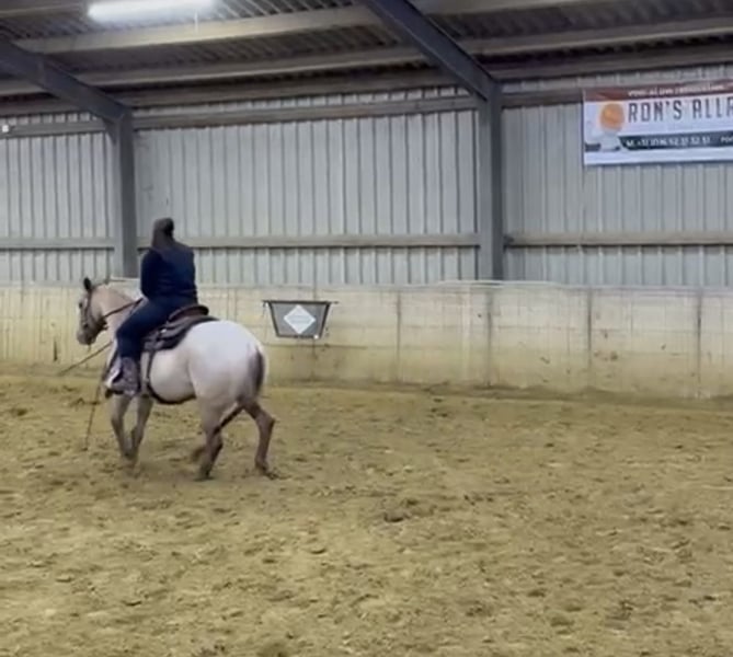 Intent to Hollywood, aka “Woody” 2020 AQHA Red Dun Roan Gelding Intent to Spoon x Cocky Goes Hollywood (Pinewoods King Jac) Woody is a gentle and personable gelding standing approximately 1.45 m (14.1 hh), with a stunning Red Dun Roan coat. With Woody, you have a versatile partner; he is suitable for both recreational riders and more ambitious riders looking to train for competitions. He has been professionally trained in basic cutting and is familiar with working cattle. Woody possesses good cow sense and is not easily spooked. Not only will he excel in cow work, but he is also well-suited for other Western disciplines such as Ranch Riding. He is a horse that is turned out outside every day in a herd (stabled at night) and enjoys playing with his friends. A social and friendly horse, both towards other horses and people. Of course, he has been regularly wormed, vaccinated, and is well-behaved at the farrier. Woody has no stable vices and is in good health. A veterinary examination (pre-purchase inspection) is of course possible. The asking price for Woody is €10,000. Please feel free to contact us with any questions or if you are interested!