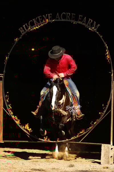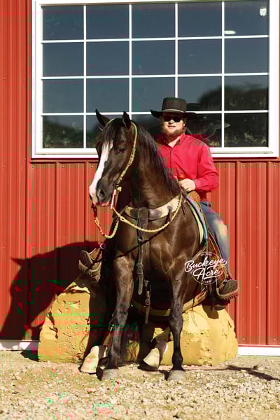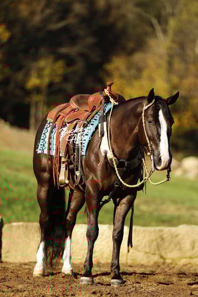 Prepare to meet a horse that truly has it all—Markett, a 2020 AQHA gelding standing a strong 14.2 hands, jet black with two white hind socks and a bold white blaze down his face. Correctly built, impeccably trained, and loaded with personality, he’s the kind of horse that instantly makes you smile just by being near him. Markett isn’t just a horse—you could call him a partner, a friend, and a superstar all in one. He’s been everywhere: from the ranch to the trails, from the show ring to Ranch Hand competition trails, and he handles it all like a pro. In fact, he was Top Horse in a Ranch Hand Competition out of 40 horses! Miles of trails, creeks, logs, fence lines—Markett takes it all in stride. Need a reliable horse to check cows, turn out horses, or just enjoy a peaceful ride? He’s your guy. This horse isn’t just about work—he’s about style, finesse, and smooth movement. Markett has very good, smooth gaits from walk, trot, extended trot, to canter. He knows his leads, executes smooth lead changes, neck reins, side passes, spins, and even a gorgeous sliding stop. Tarps, jugs, whips, arenas (indoor or outdoor)—he doesn’t flinch. He’s been ridden western, English, bareback, and even brideless. He’s truly a Buckeye Graduate through and through. Markett’s heart is as big as his talent. Beginner? Senior? Advanced? Doesn’t matter—he’ll meet you right where you are. Show him today, hit the trails tomorrow, and let the grandkids enjoy him next—he’ll slow his pace, lower his head, and care for them like a trusted babysitter. He’s the first to greet you at the barn gate and will patiently stand at your side until you’re ready. He’s Henry’s go-to horse for jobs big and small—and he’s always ready to impress. Up-to-date on vaccinations, deworming, and shoeing, Markett is ready to bring joy to his next family. Whether you ride once a week or just want a pasture companion that brightens your day, he’s the horse who makes everything better. Markett is more than a horse—he’s a story waiting to be shared, a partner for life, and a heart-stealer for anyone who meets him. Call Duane @ 330-231-2324 to see him in person and experience the magic firsthand.