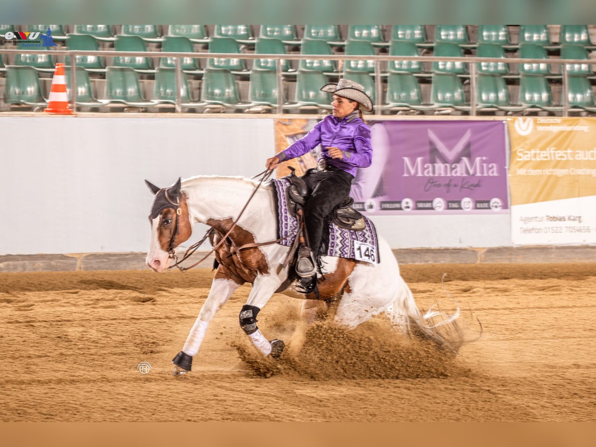 Zum Verkauf steht ein beeindruckender American Quarter Horse Hengst, geboren im Jahr 2019. Mit einem Stockmaß von 148 cm ist er ein kompakter und wendiger Partner, ideal für Reining und andere Disziplinen. Dieser Hengst besticht durch sein auffälliges Tobiano-Farbenspiel, das ihn zu einem echten Blickfang macht. Wegen Zeitmangel zu verkaufen. Er ist gut erzogen, brav im Umgang und hat bereits erste Erfahrungen im Reining gesammelt. Sein Potenzial ist vielversprechend und er wartet darauf, mit einem neuen Reiter durchzustarten. Bei Interesse oder weiteren Fragen stehe ich gerne zur Verfügung. Besichtigungen sind nach Absprache möglich.