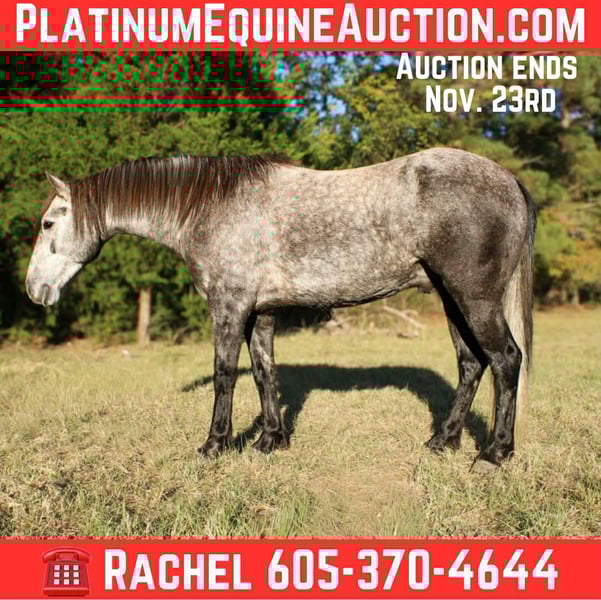 ONLINE AUCTION Place your bids at www.PlatinumEquineAuction.com Starting Bid $3500 Auction ends November 23rd, 2025 Need a new saddle? Check out White Rock Saddles on our website or Facebook Stormy is a 5 year old Andalusian cross gelding, standing 14.3 hands tall and stout! He is gentle and quiet to be around on the ground! Stormy has been trail rode all over, he goes wherever he is asked, crosses the creeks, logs and bridges great! He has also been around cattle for basic ranch work such as gathering and penning. Stormy has also spent a little time in the arena, he is soft in the face, he has a willing attitude and smooth gaits. Whether you’re looking for a trail partner, a dressage prospect, or a stunning addition to your family, this gelding has the potential to excel in any discipline. Don’t miss the opportunity to own this exceptional Andalusian cross gelding! ☎️ 𝐏𝐥𝐞𝐚𝐬𝐞 𝐫𝐞𝐚𝐜𝐡 𝐨𝐮𝐭 𝐭𝐨 Rachel 𝐰𝐢𝐭𝐡 𝐚𝐧𝐲 𝐪𝐮𝐞𝐬𝐭𝐢𝐨𝐧𝐬, TR Livestock 605-370-4644. Stormy is located in Rusk TX, we can also help arrange shipping nationwide! ONLINE AUCTION Place your bids at www.PlatinumEquineAuction.com Starting Bid $3500 Auction ends November 23rd, 2025 Need a new saddle? Check out White Rock Saddles on our website or Facebook