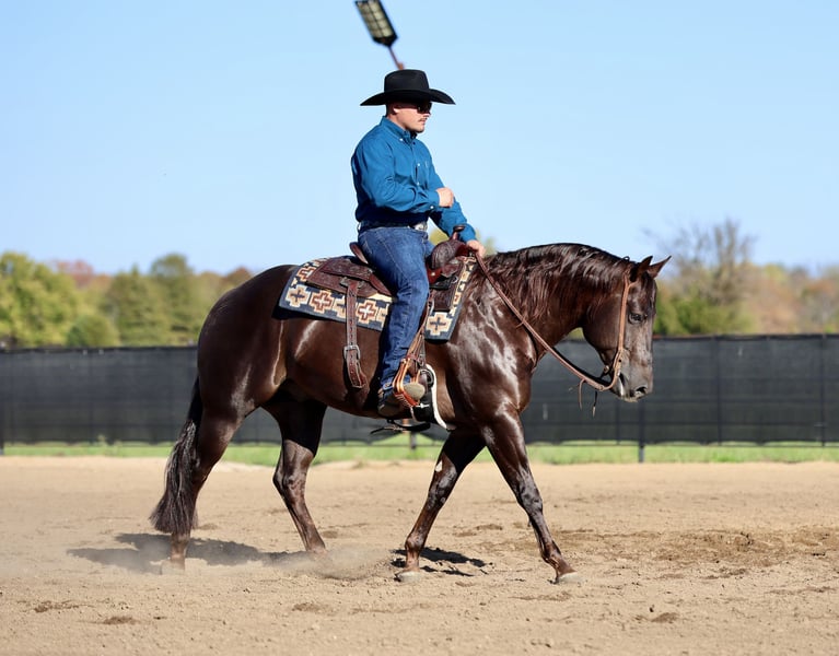 🎲LE CHOIX DU CAVALIER🎲 En ce moment jusqu’au LUNDI 17 NOVEMBRE – Disponible EXCLUSIVEMENT sur le site HorseBid ! Pour plus de détails et pour vous inscrire, rendez-vous sur : www.Horsebid.com CONTACT DU VENDURO : Premier Horses LLC 417-761-2580 LIEU : Buffalo, Missouri RACE : Quarter Horse ENREGISTRÉ : Oui NOM ENREGISTRÉ : Good Lil Spook – Sire par Smart Spook, gagnant en NRHA COULEUR : Alezan TAILLE : 14,3 hh ÂGE : 5 ans SEXE : Étalon Faites la connaissance de Good Lil Spook, plus connu à l’écurie sous le nom de « Hitman ». Ce magnifique étalon bai foncé, à la robe de foie, ne passe pas inaperçu où qu’il aille — non seulement pour son apparence, mais aussi pour son talent, son tempérament et sa confiance tranquille. Hitman est par le légendaire Smart Spook, un étalon NRHA ayant produit plus de 8,5 millions de dollars de gains en compétition, avec des gains à vie de plus de 405 000 $. Il est issu d’une mère gagnante en compétition et reproductrice, dont les foals perpétuent cette lignée performante. Avec un tel pedigree, il n’est pas surprenant que Hitman possède à la fois la génétique et la capacité pour briller en concours et devenir un atout précieux dans tout programme de reproduction. Il incarne l’équilibre et la qualité — ossature solide, corpulence épaisse, conformations parfaites, tout en restant raffiné avec cette tête de poupée classique que tout le monde aime. Son riche pelage de foie brillant sous le soleil, sa longue crinière abondante et sa queue épaisse accentuent sa présence impressionnante. Chaque détail, de sa posture à la douceur de son regard, témoigne d’un cheval à la fois élégant et doté d’un caractère exceptionnel. Sur le terrain, Hitman est tout en sérieux — puissant, précis et élégant. Il a été couru avec succès en Niveau 4 Open, avec une note solide de 217, et a gagné plus de 1 600 $ en NRHA. C’est un grand stopper qui glisse profondément et droit, avec des spins rapides et réactifs, ainsi que des cercles rapides et fluides, tout en restant doux en bride. Ses changements de main sont fluides, et sa cadence ainsi que son rythme en font un plaisir à regarder et à monter. C’est le genre de cheval qui facilite une belle présentation en concours. Mais ce qui distingue vraiment Hitman, c’est son tempérament exceptionnel. Malgré son talent et sa puissance, il est d’une gentillesse et d’une tranquillité remarquables. Il adore les gens et accueille chaque visiteur de son box avec un petit nickering. Dans l’écurie, il est d’une douceur extrême — respectueux, doux, et toujours désireux de plaire. Même s’il est étalon, il se monte et se gère comme un hongre. Notre fille de 6 ans le monte régulièrement, et ils s’adorent mutuellement. Il est patient, stable, et possède cette rare confiance qui en fait un cheval très apprécié. En dehors du terrain de concours, Hitman est aussi polyvalent que fiable. Il aime les balades en extérieur, franchit ponts, obstacles et passages d’eau sans hésitation. Il ouvre et ferme les portails, va chercher le courrier, et travaille même le bétail — toujours calme et confiant, peu importe l’environnement. Sa sûreté de pied et sa confiance tranquille en font un plaisir à monter partout. Good Lil Spook, c’est le package complet — pedigree de classe mondiale, record de performances, conformation irréprochable, et une disposition en or. Que vous cherchiez votre prochain cheval de concours, un reproducteur de premier ordre ou simplement un partenaire gentil avec l’allure et le caractère pour faire fondre les cœurs, Hitman est un étalon rare. Il a passé un examen préalable à l’achat.