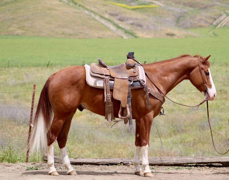 ONLINE AUCTION Place your bids at www.PlatinumEquineAuction.com Starting Bid $3500 Auction ends May 11th, 2025 Need a new saddle? Check out White Rock Saddles on our website or Facebook! Everyone loves a flashy bald face, sweet personality, and a calm demeanor! Chulo is just that and some. Standing at 14.3HH and just 5 years old, he is the most perfect combination of calmness and talented! Even though he is still young, Chulo is an old soul. Nothing phases him and he takes everything in stride! He has been hauled all over to many different places and is such a gentleman under all circumstances. He is always aware of his surroundings, but not a spooky horse at all. He has no bad habits and is safe as the day is long. He has been rode by children and beginners, down busy traffic filled streets and around loud music. He is fantastic out trail riding and goes anywhere you ask him to go without refusing. He has been used lightly on the ranch and is very familiar with cattle, even has had some roped off him! Chulo also does tricks! He is fully whistle broke and knows his name when called! He will also spread his legs for mounting, when tapped on the shoulder before you’re ready to climb up for a ride! He can be left off long periods of time and be the same horse every time. He’s very personable and loves attention. Chulo has a more whoa than go speed to him, but will still easily transition when asked to. He has a good stop and collects in the bridle. He is very light and neck reins like a professional. This horse is absolutely easy for most anyone to ride. He has a whole life long of potential in any discipline. He would be happy to continue as a compatible trail partner, so he has the talent to continue into the show world! This is the perfect young gelding with zero issues or flaws ready to find his new family to enjoy his sweet, loving qualities! He is located in Bitterwater, CA. For more info or to come out and meet Chulo, please contact Cheyenne Rey at 831-537-8746. ONLINE AUCTION Place your bids at www.PlatinumEquineAuction.com Starting Bid $3500 Auction ends May 11th, 2025 Need a new saddle? Check out White Rock Saddles on our website or Facebook!