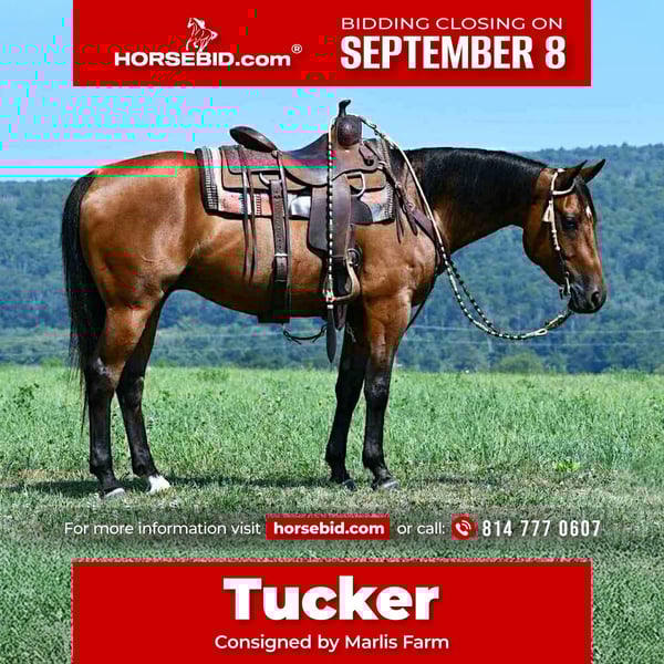 ♦️ 𝐭𝐡𝐞 𝐒𝐞𝐩𝐭𝐞𝐦𝐛𝐞𝐫 𝑺𝒆𝒍𝒆𝒄𝒕 ♦️ Happening now thru MONDAY | SEPTEMBER 8th - Available EXCLUSIVELY on HorseBid's website! For more details and to register visit: www.Horsebid.com CONSIGNOR CONTACT: Marlis Farm 814 777 0607 LOCATION: Rebersburg, PA BREED: Quarterhorse REGISTERED: Yes REGISTERED NAME: Tuckers Thiftwood COLOR: Bay HEIGHT: 15 AGE: 6 GENDER: Gelding "Tuckers Thiftwood" AKA Tucker is a 15 hand 6 year old bay registered AQHA gelding that is well trained and a blast to have around, Tucker neckreins, sidepasses and has a big stop. He picks up both his leads and has a smooth walk trot and canter. Tucker is a great trail horse, he goes over logs, through water and wherever you point him with no issues. We have also ridden him down the main highway into town and through all the traffic and he dont mind any of it, he rides by himself or in a group. We have also used Tucker to push cattle and check fences here on the farm. He is very versatile and takes to whatever task you put in front of him. Tucker also rides english and will take a jump as well, he is gentle and rides around on a loose rein and enjoys life. He does well inside or turned out in a mixed herd. Tucker stands to be bathed, shod, tacked and mounted. We have exposed Tucker to tarps, bouncy balls and carried the flag with him, and he takes to it like a walk in the park. For more information or to come meet Tucker call Mark 814 777 0607 (call only) We can help arrange shipping anywhere!!